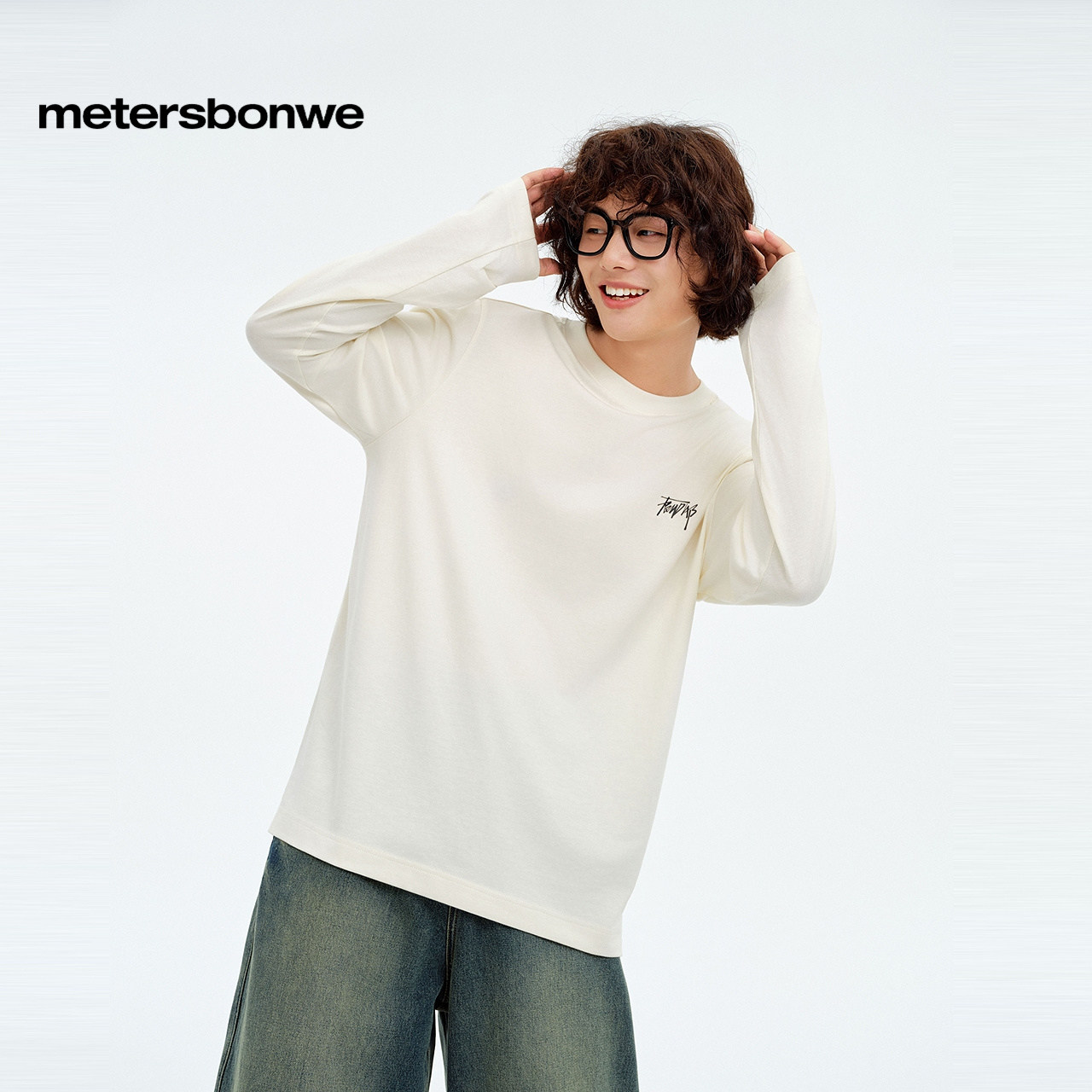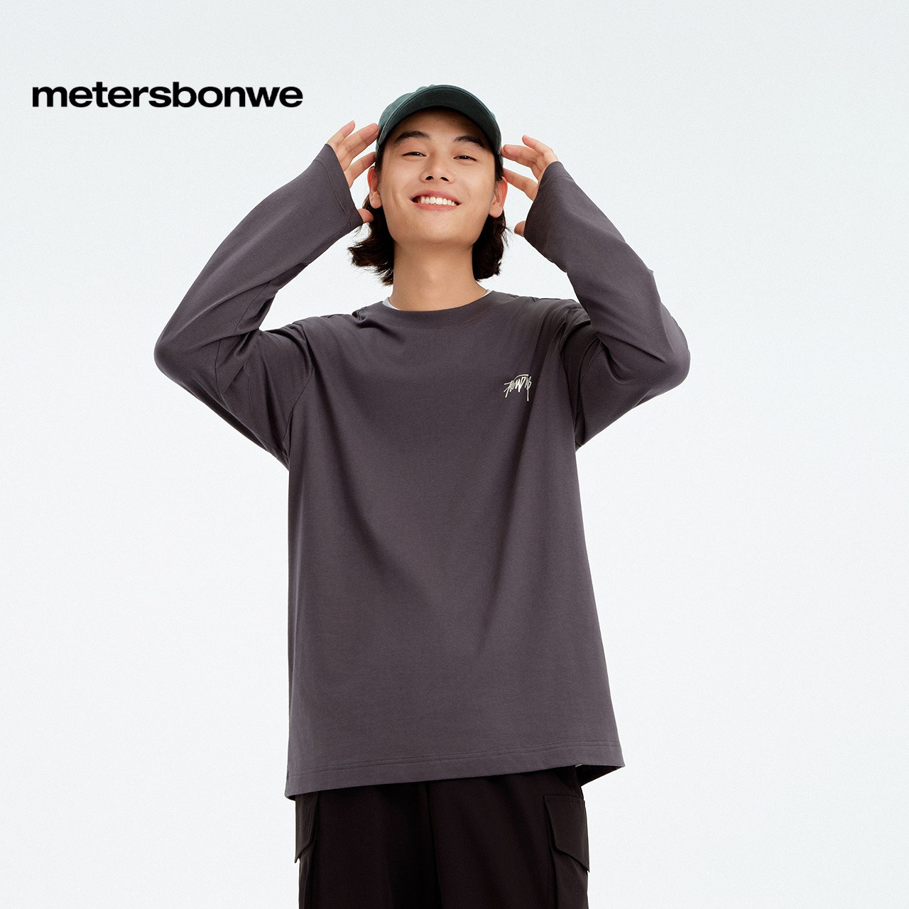 [商场同款]美特斯邦威T恤男春美式新款小印花长袖恤圆领通勤t恤