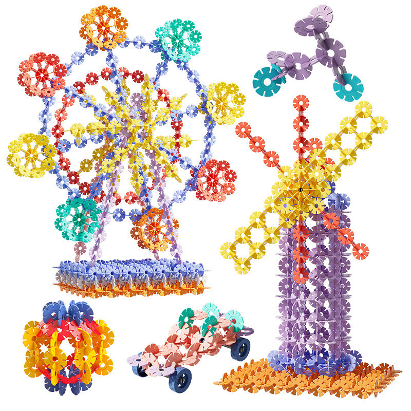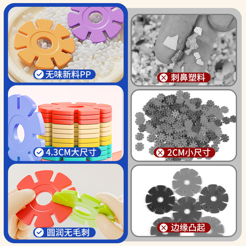 厚款雪花片儿童益智玩具智力开发男女孩DIY早教积木立体收纳英文