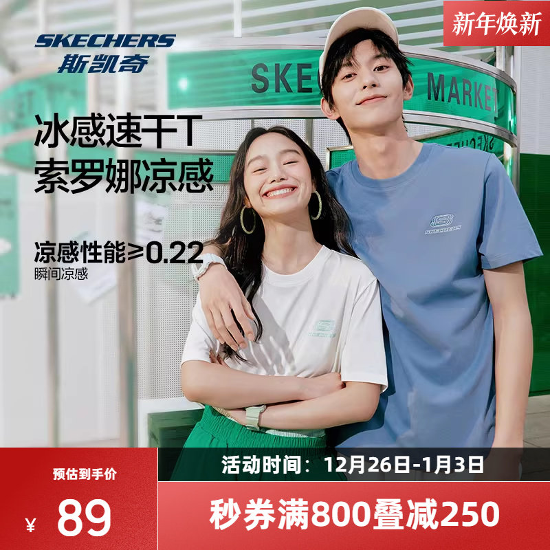 斯凯奇男女情侣款凉感短袖T恤新款舒适速干运动时尚百搭上衣