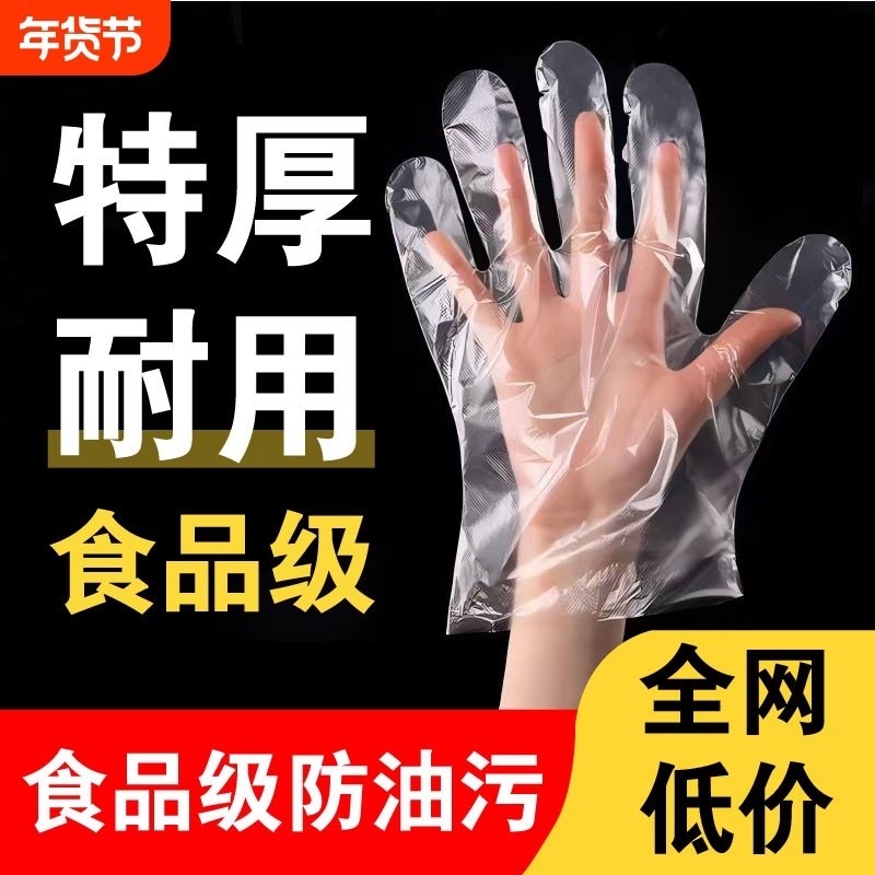 一次性手套pe食品级专用加厚耐用家用透明吃小龙虾餐饮耐磨特厚