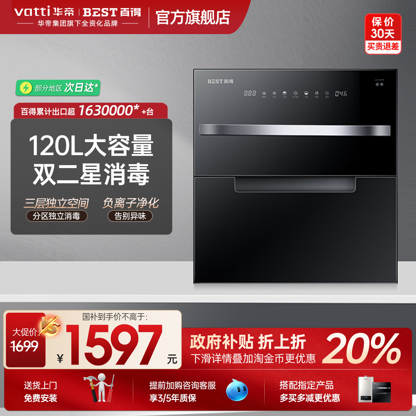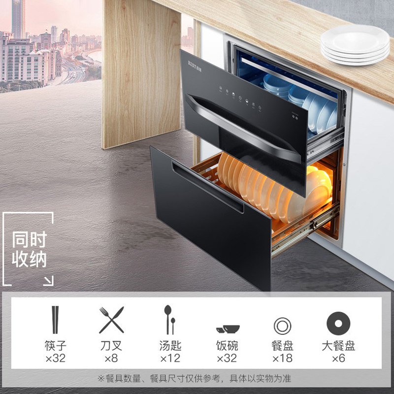 华帝百得DX05家用台式嵌入式厨房餐具120L消毒碗柜小型二星消毒柜