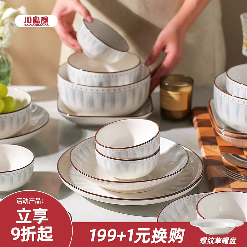 川岛屋北欧陶瓷盘子菜盘家用碟子餐盘陶瓷饭碗釉下彩餐具碗碟套装
