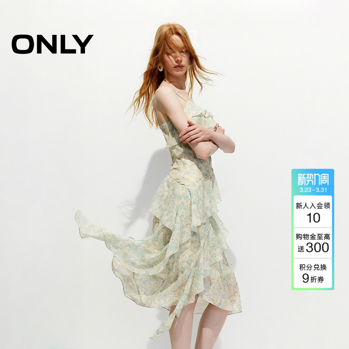 ONLY2026春季新款飘逸荷叶边裙子可调节细肩带不规则仙女连衣裙女