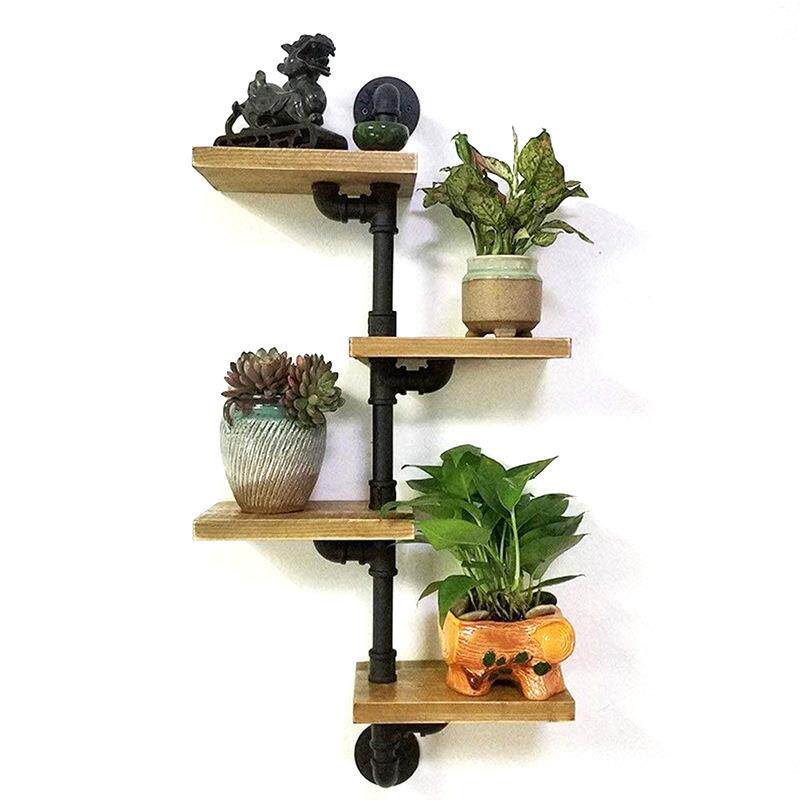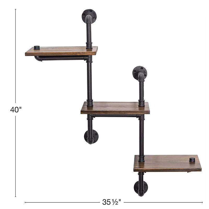 跨境砖供木壁梯浮动仿古黑色工业管道家用墙上支撑架多层置物架