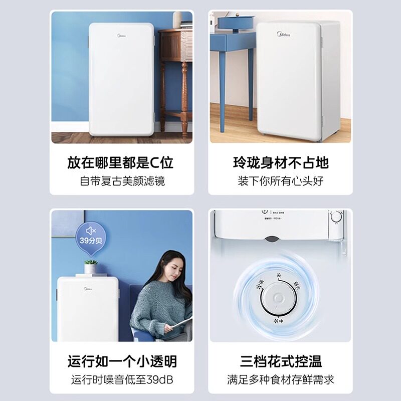 【全国补贴】美的93升小冰箱以旧换新单门复古母婴美妆化妆品冷藏