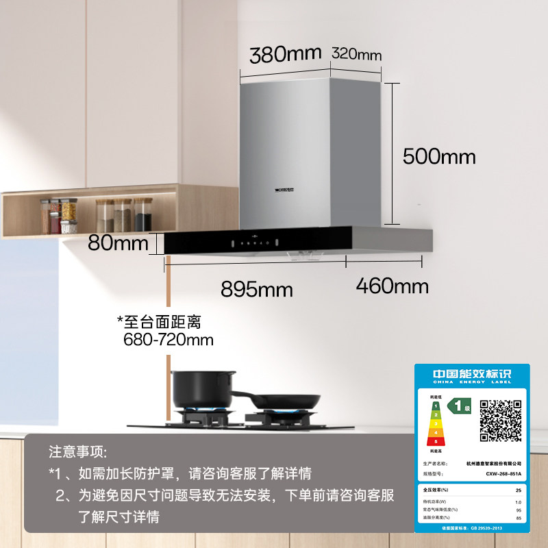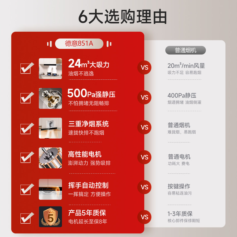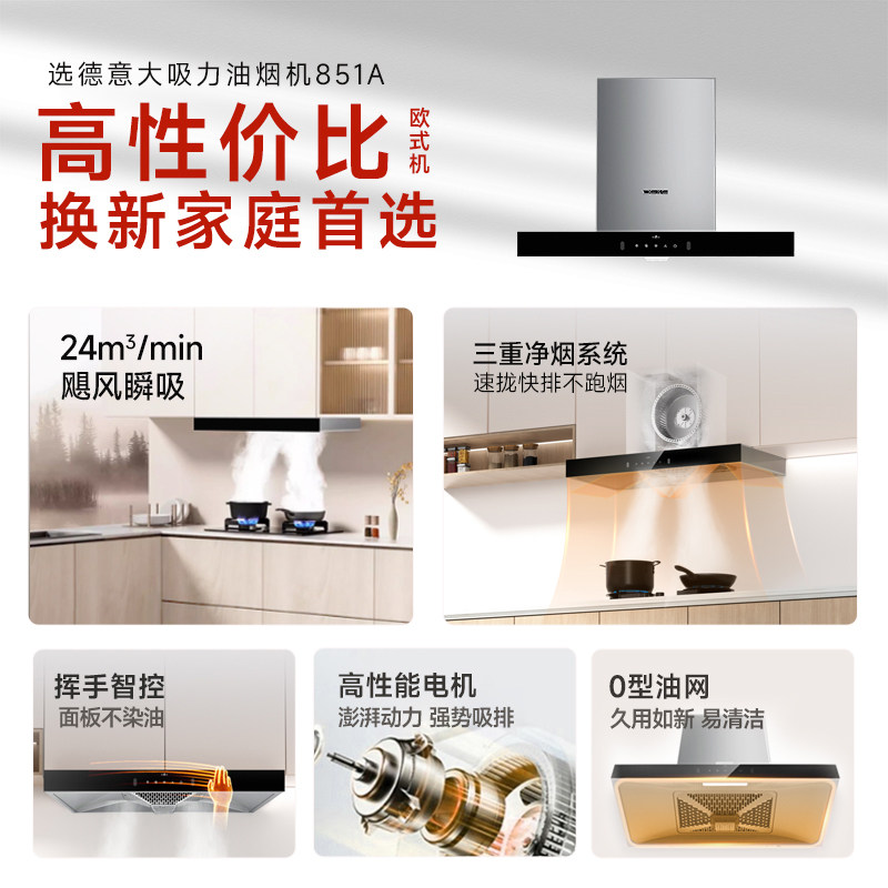 德意抽油烟机家用厨房吸油烟机顶吸式油烟机851A