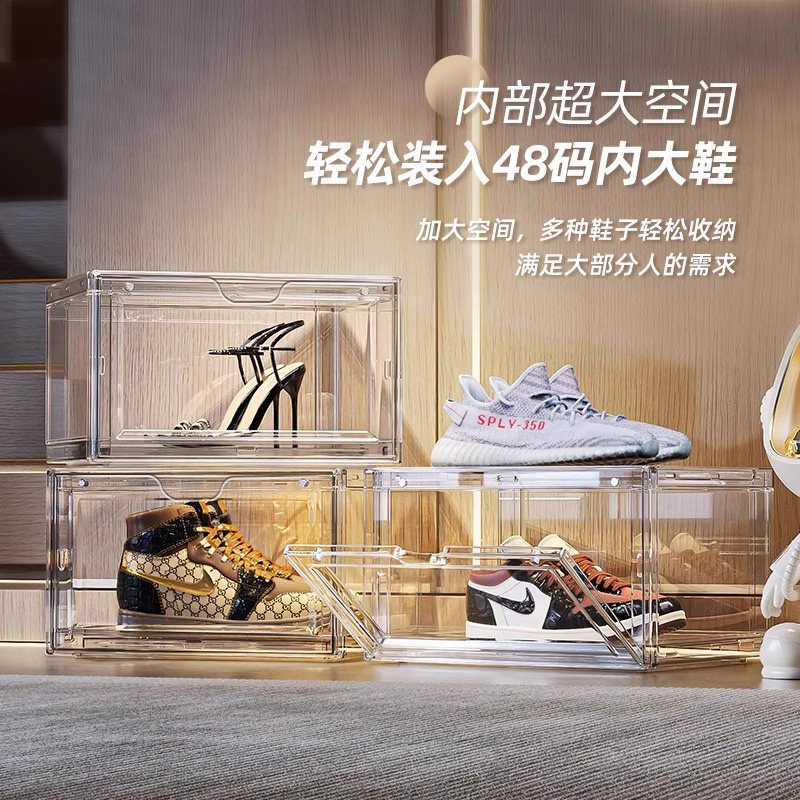 鞋盒收纳盒球鞋防氧化鞋柜透明鞋子收纳塑料省空间鞋墙磁吸侧开