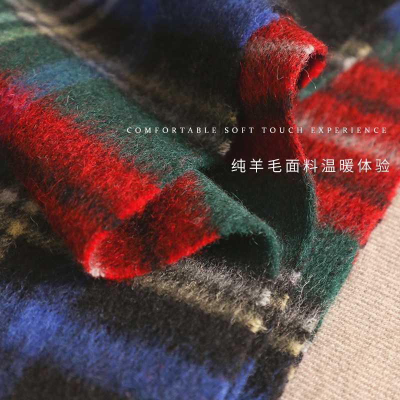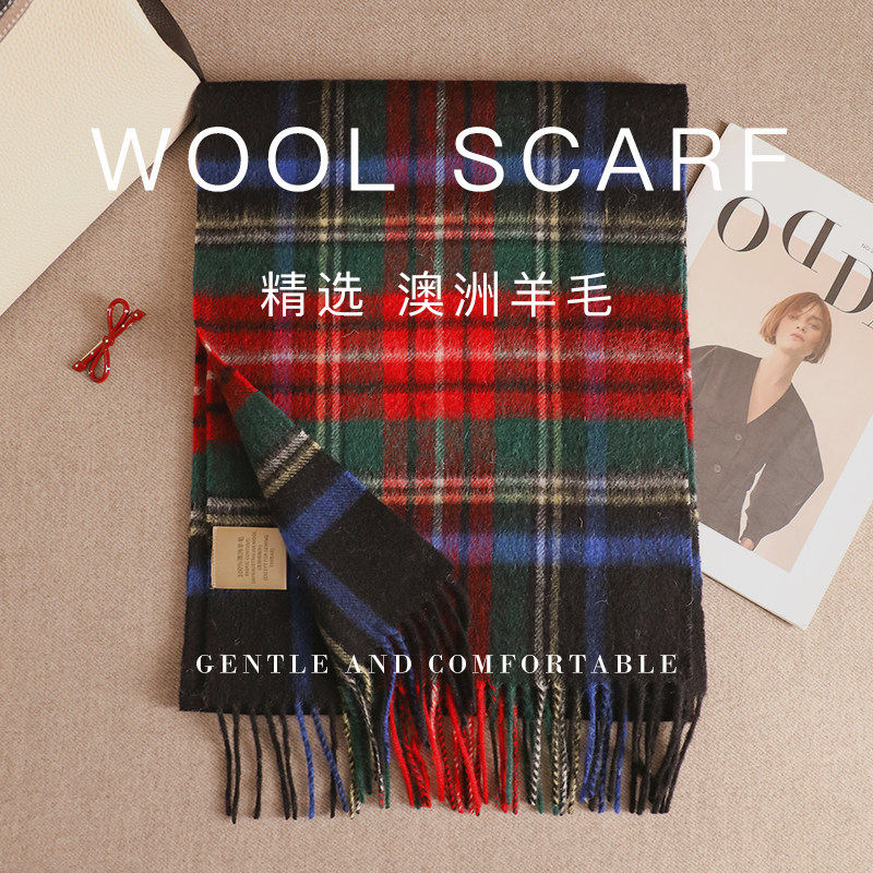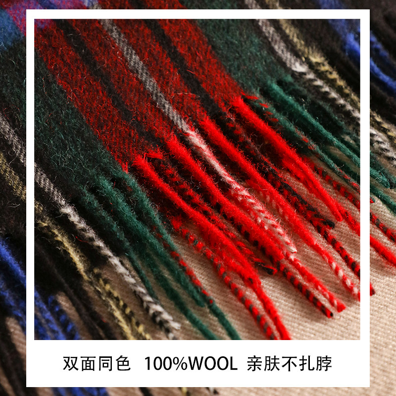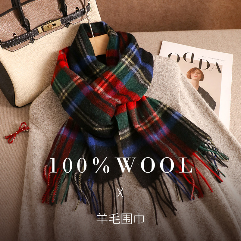 汉岚芝2025冬季新款亲肤100%羊毛格子围巾节日送长辈外搭流苏披肩