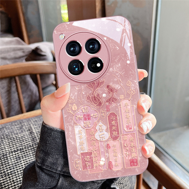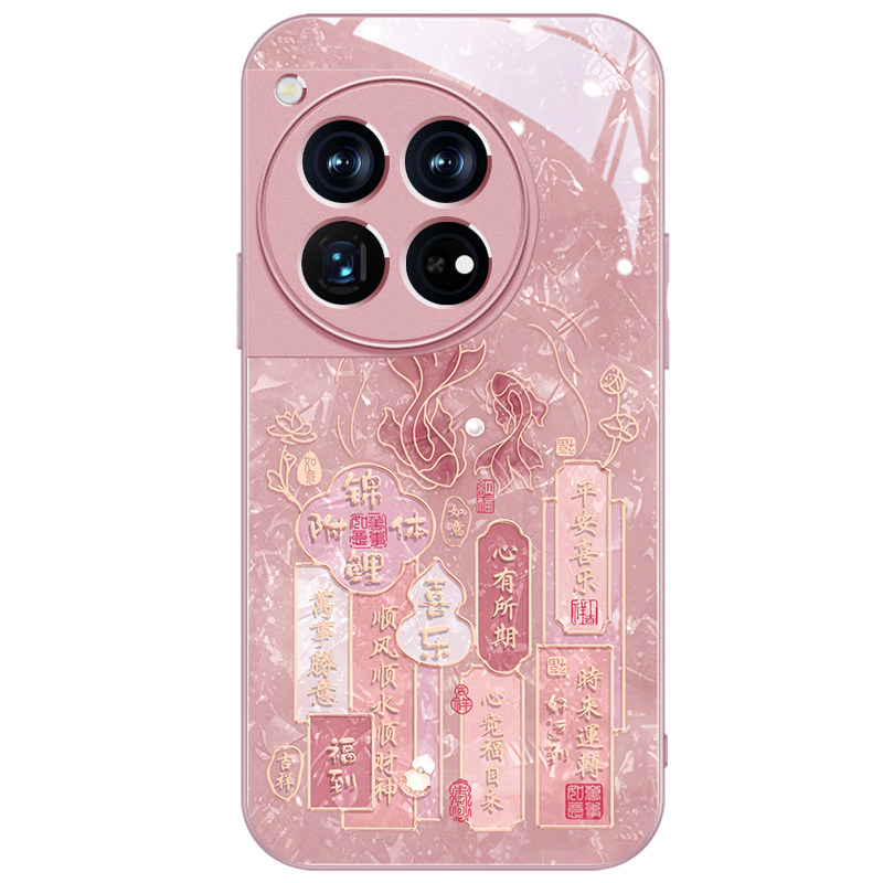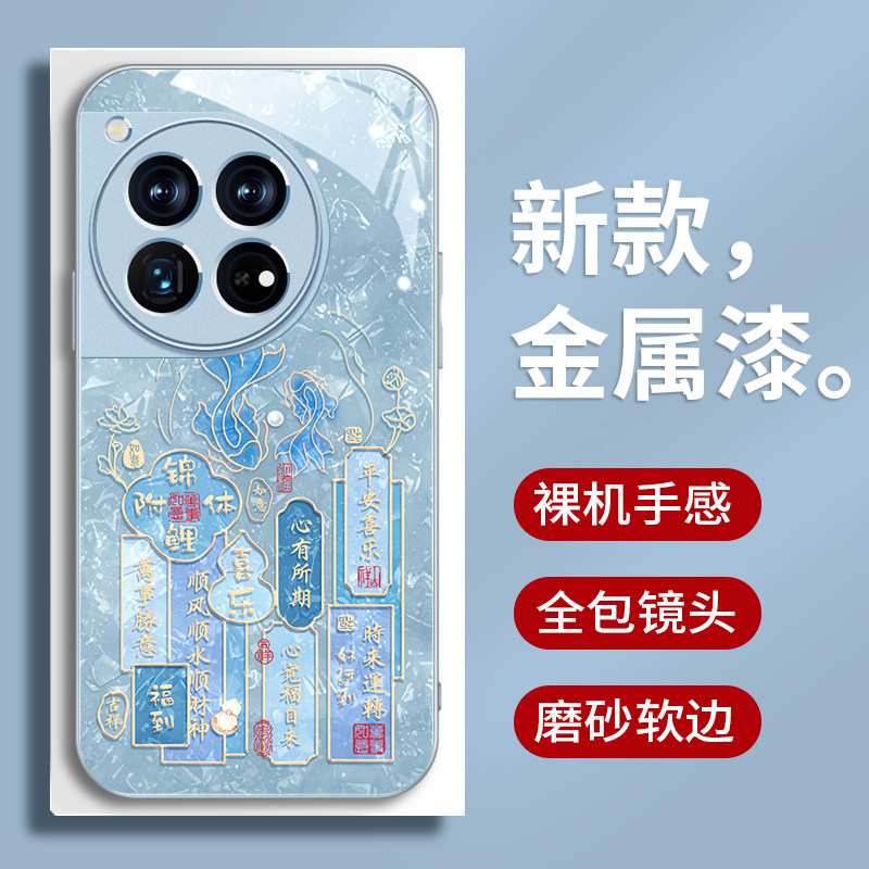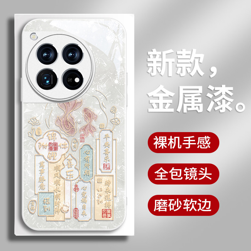 富贵锦鲤一加13手机壳新款一加ACE5女款OnePlus15金属漆全包防摔ace3pro轻奢高级1+12国潮风ace6个性文字简约