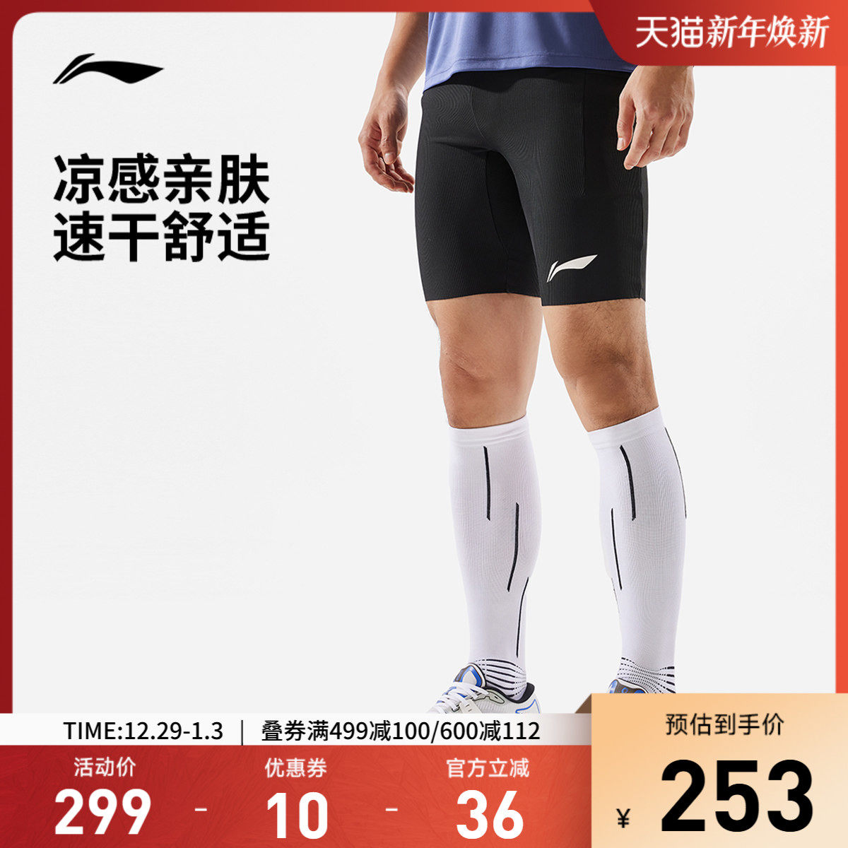 李宁龙雀竞速紧身短裤男士健身裤压缩裤男装裤子针织跑步运动裤