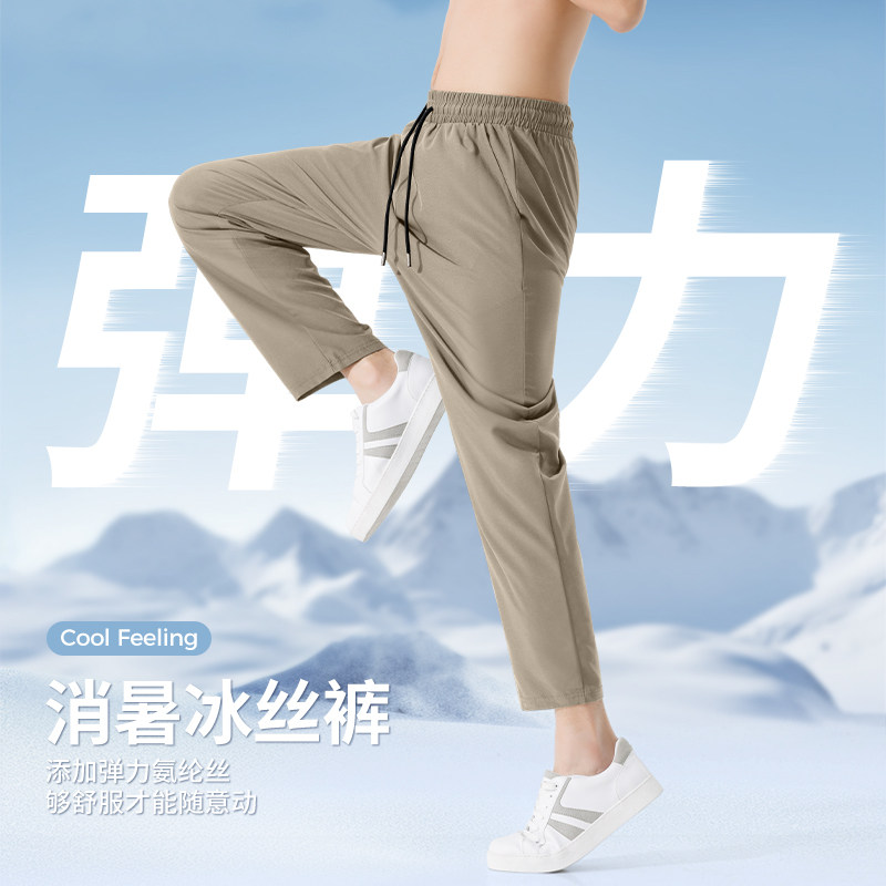 GV真维斯冰丝休闲裤子男款夏季男士薄款运动裤青少年直筒速干裤B