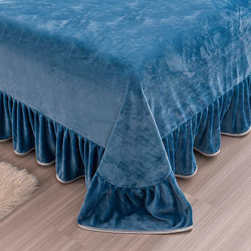 2025秋冬新品8.5-9.5斤纯色珊瑚牛奶金貂绒法莱绒四件套床裙款