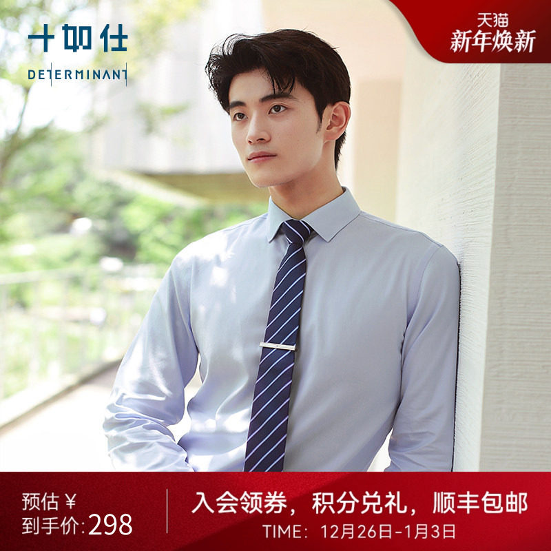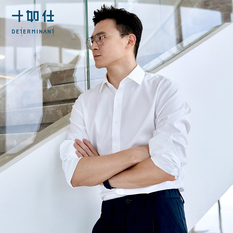 十如仕男士高智风新疆长绒棉免烫纯色长袖衬衫通勤商务衬衣301