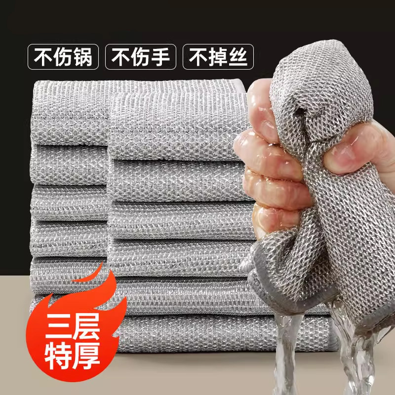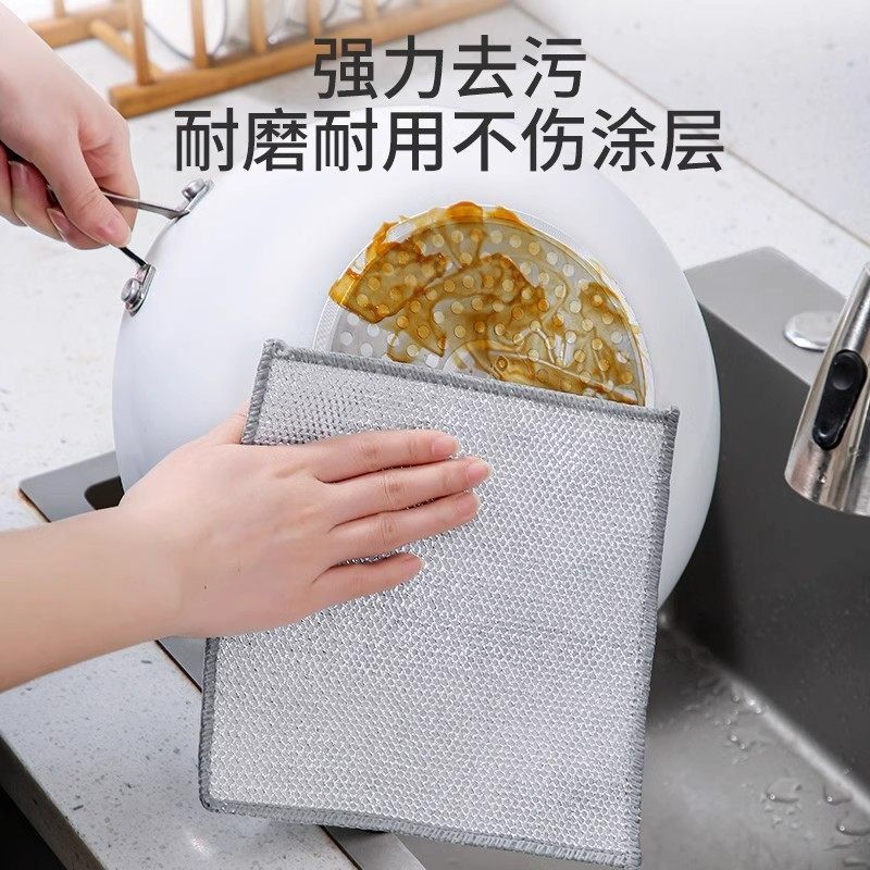 钢丝洗碗布家用不沾油钢丝球抹布厨房专用金属丝清洁布双面银丝
