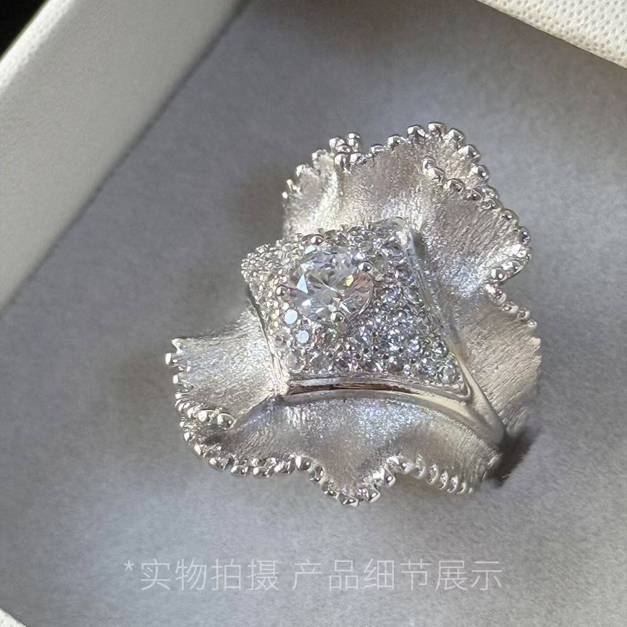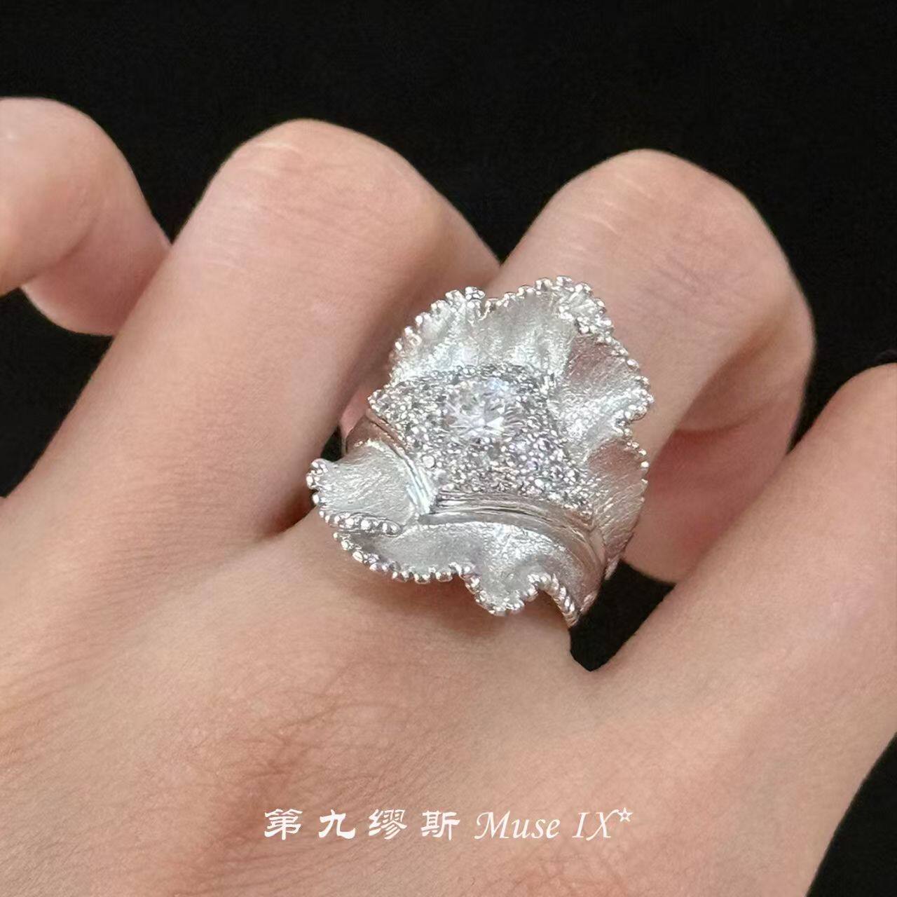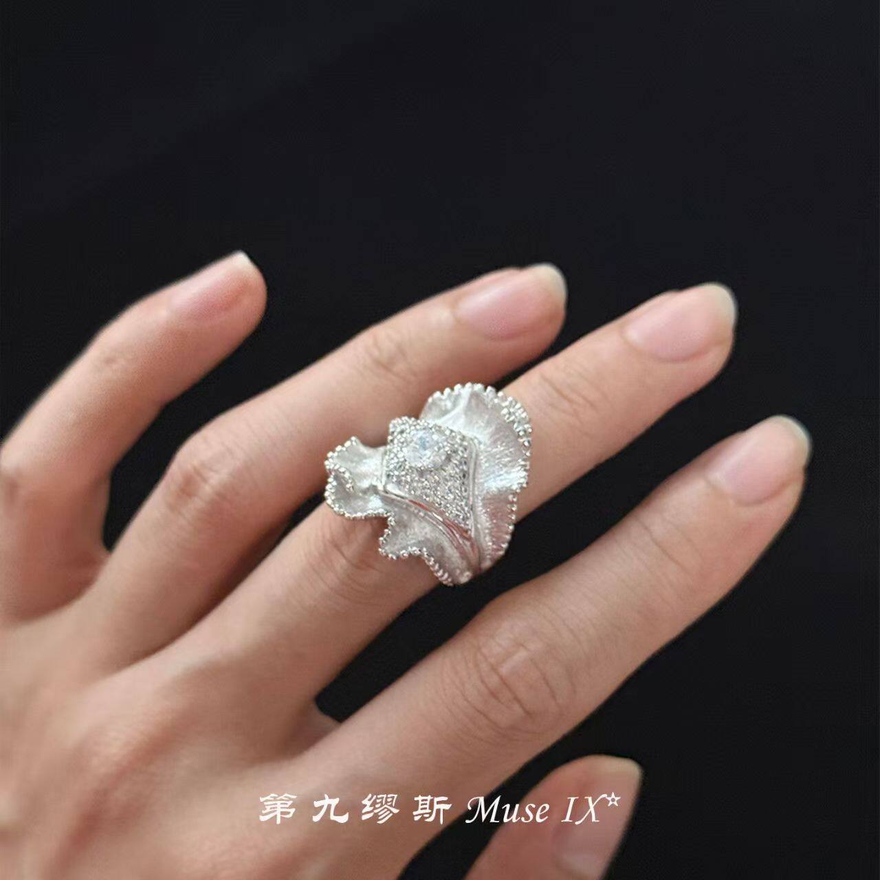 【第九缪斯】重工设计绸缎裙边碎钻戒指女小众设计轻奢高级感指环