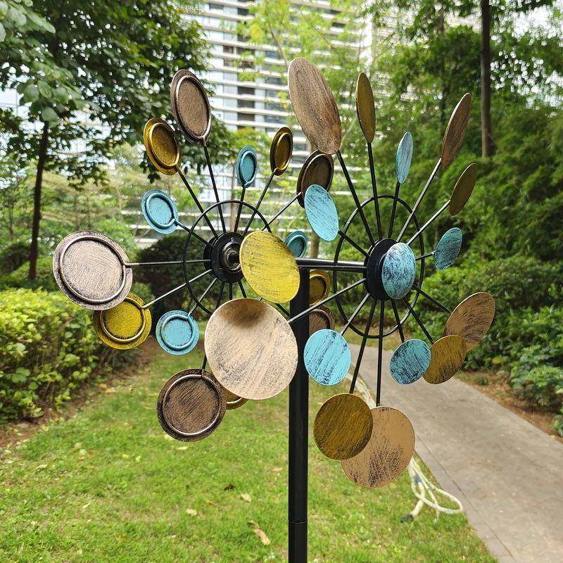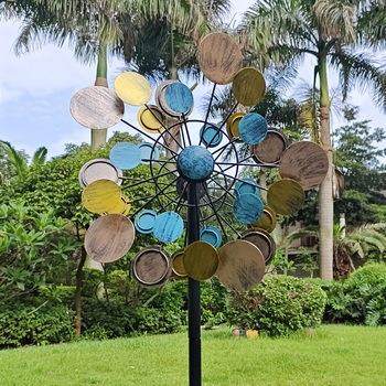 北欧户外花园阳台庭院别墅漂亮铁艺小圆片风车装饰新美式乡村布置