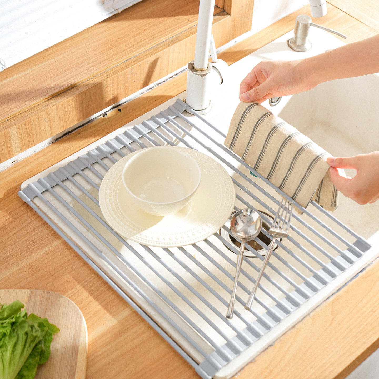 舍里可折叠厨房水槽沥水架水池碗碟收纳置物架碗盘架沥水篮台面