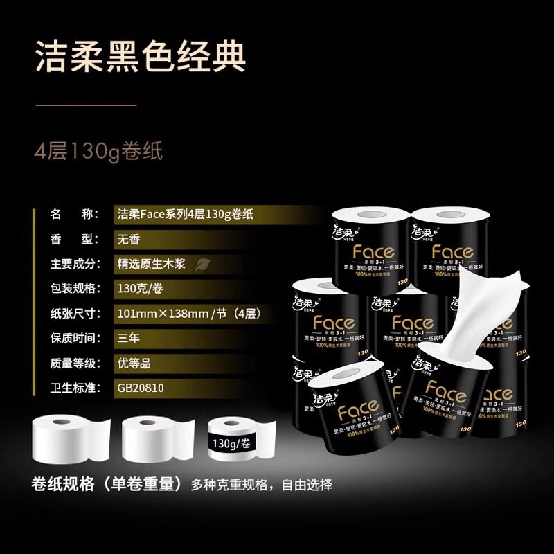 洁柔有芯卷纸亲肤卫生纸130g*4层家用加厚黑金大卷纸家用手纸