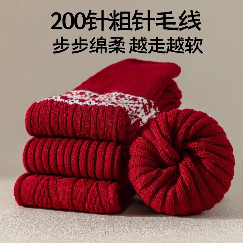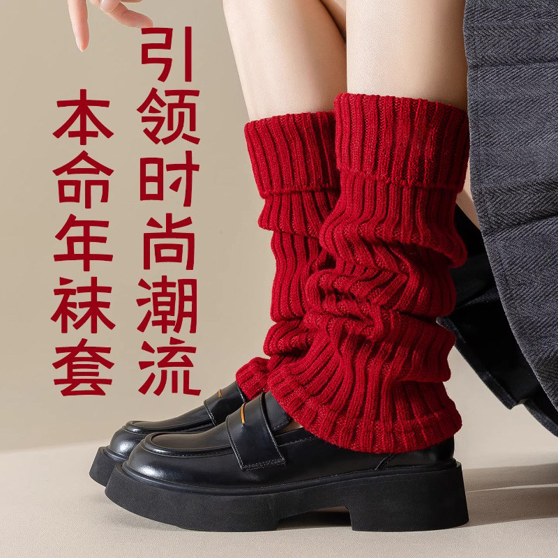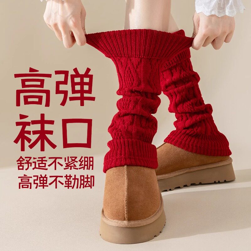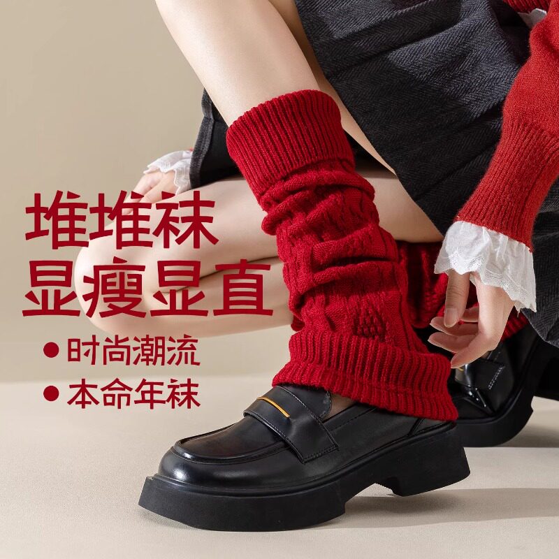 本命年堆堆袜套女红袜子女秋冬加厚保暖费尔岛小腿套马新年中筒袜