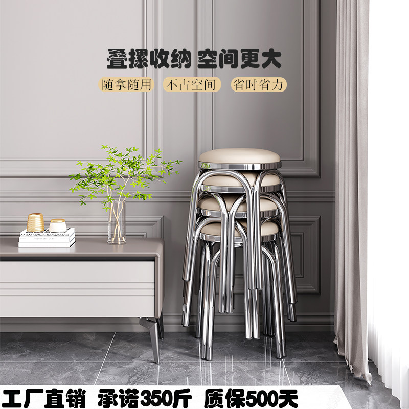 圆凳子家用现代简约高板凳可叠放餐椅轻奢高级感不锈钢餐桌小椅子