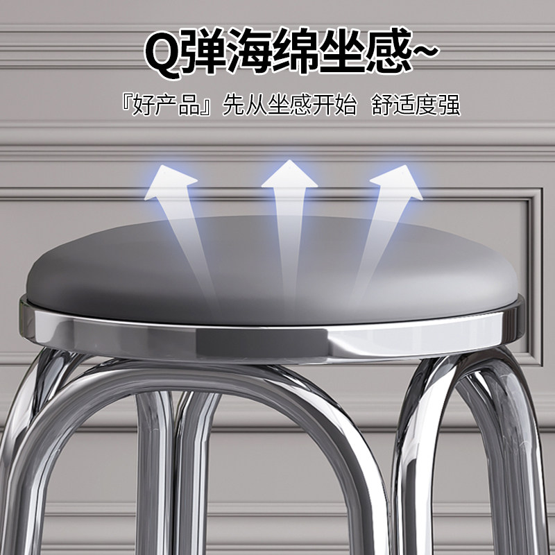 加厚不锈钢圆凳家用软包矮凳轻奢餐厅金属承重收纳餐桌新型舒适