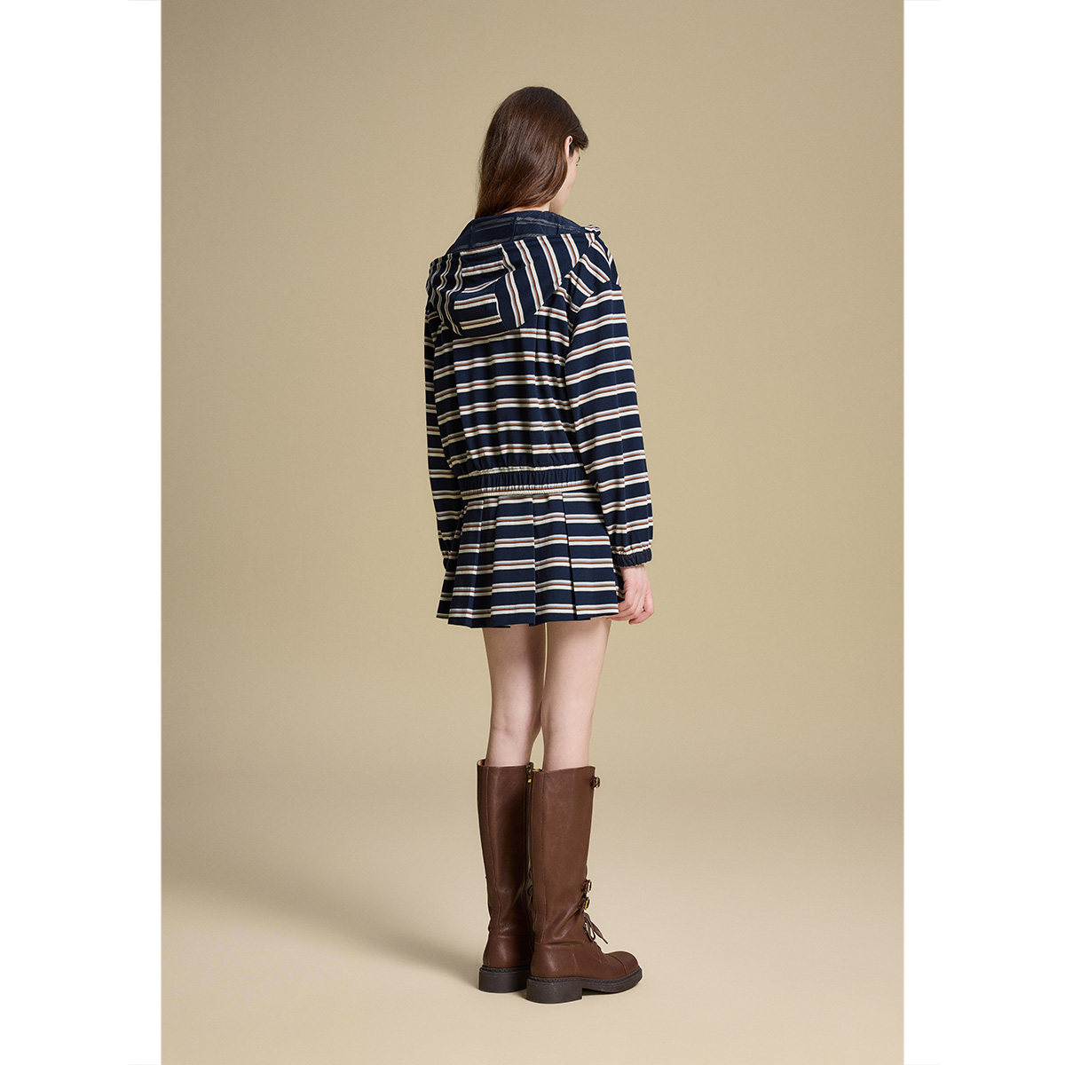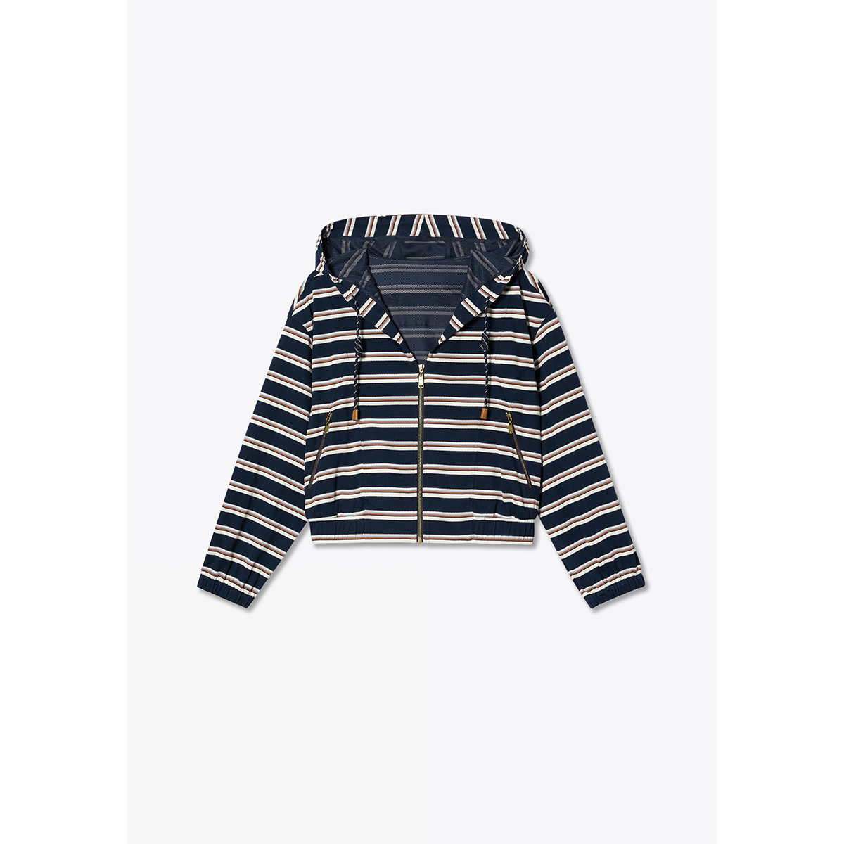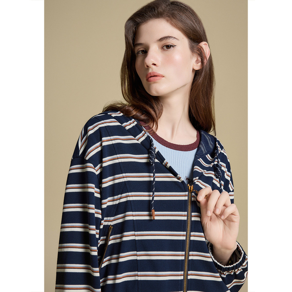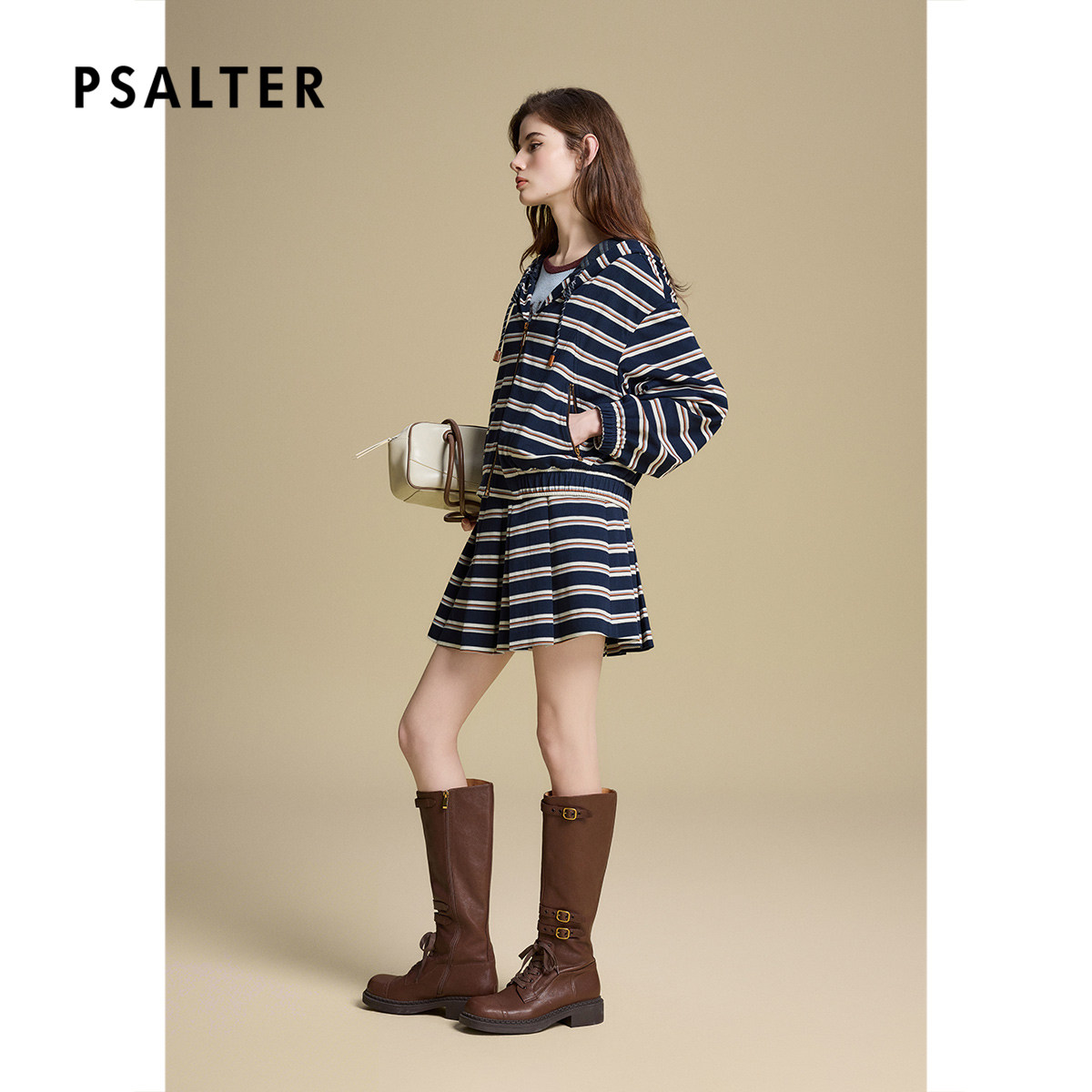 PSALTER诗篇海军蓝条纹连帽宽松短外套2025秋款