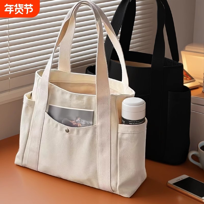 大容量托特帆布包上班外出高颜值通勤百搭学生装书单肩布袋包手提