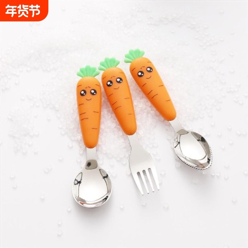 卡通胡萝卜可爱学吃饭不锈钢勺子短勺叉婴儿童餐具辅食刮泥勺