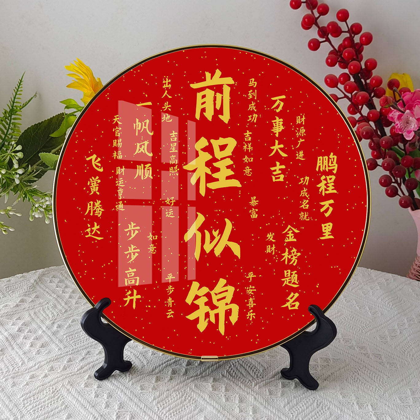 我太棒了圆形正能量励志摆件相框桌面装饰画客厅天官赐福摆台画框