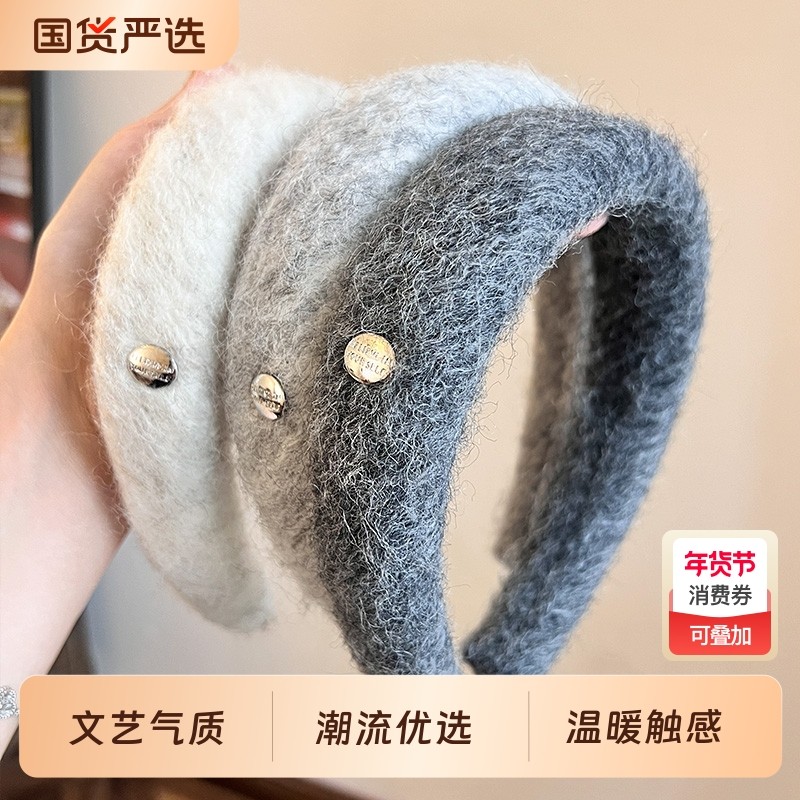 秋冬毛绒发箍高级感法式复古宽边头箍高颅顶2025年新款压发女发卡