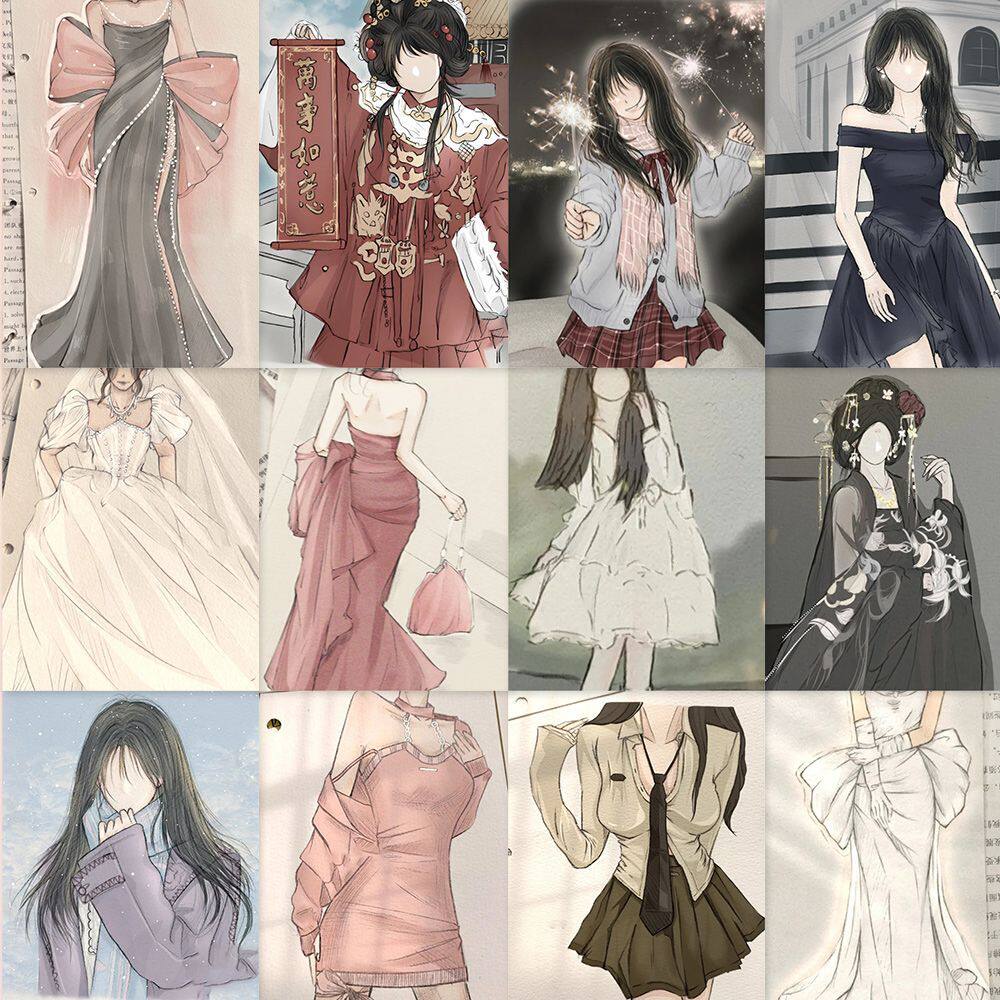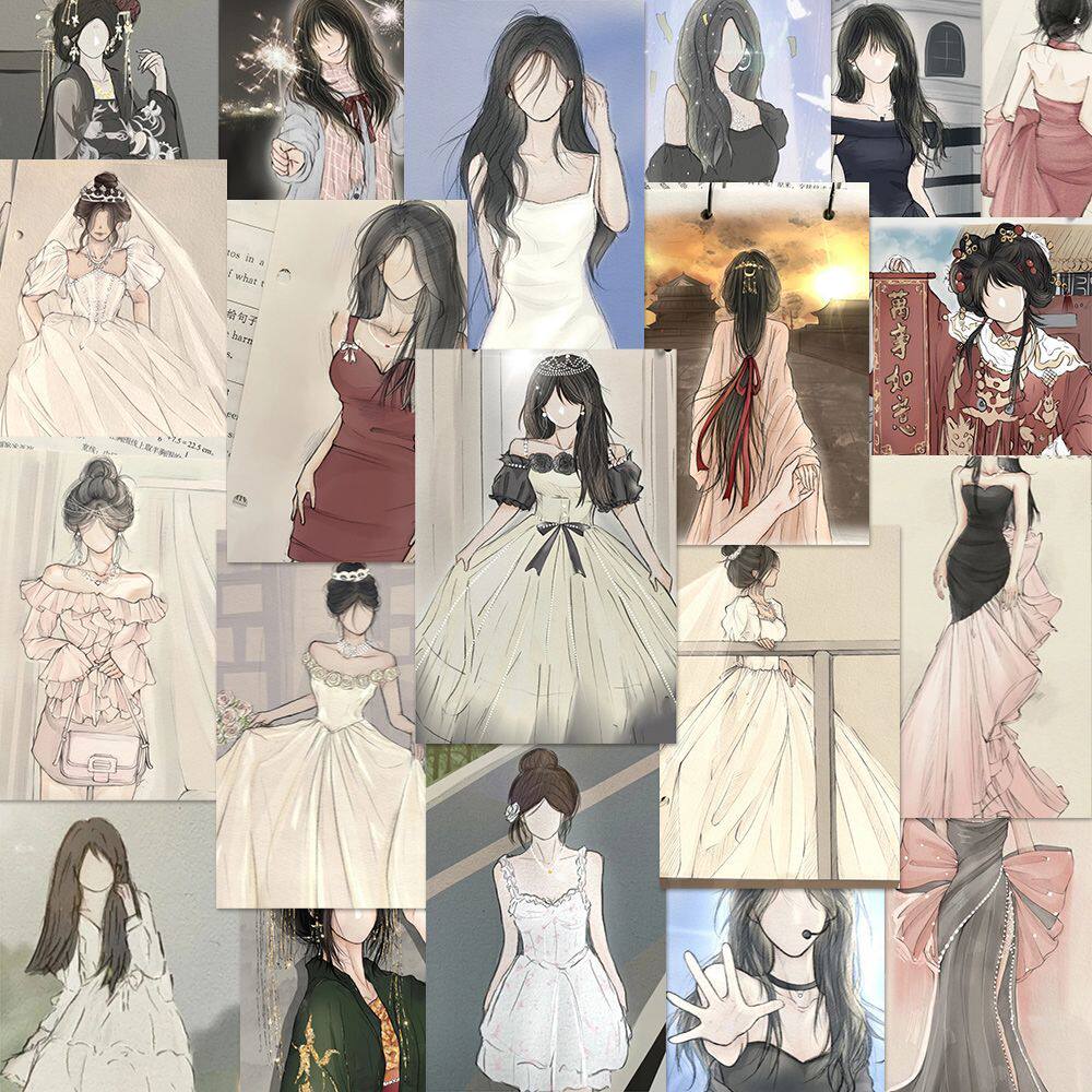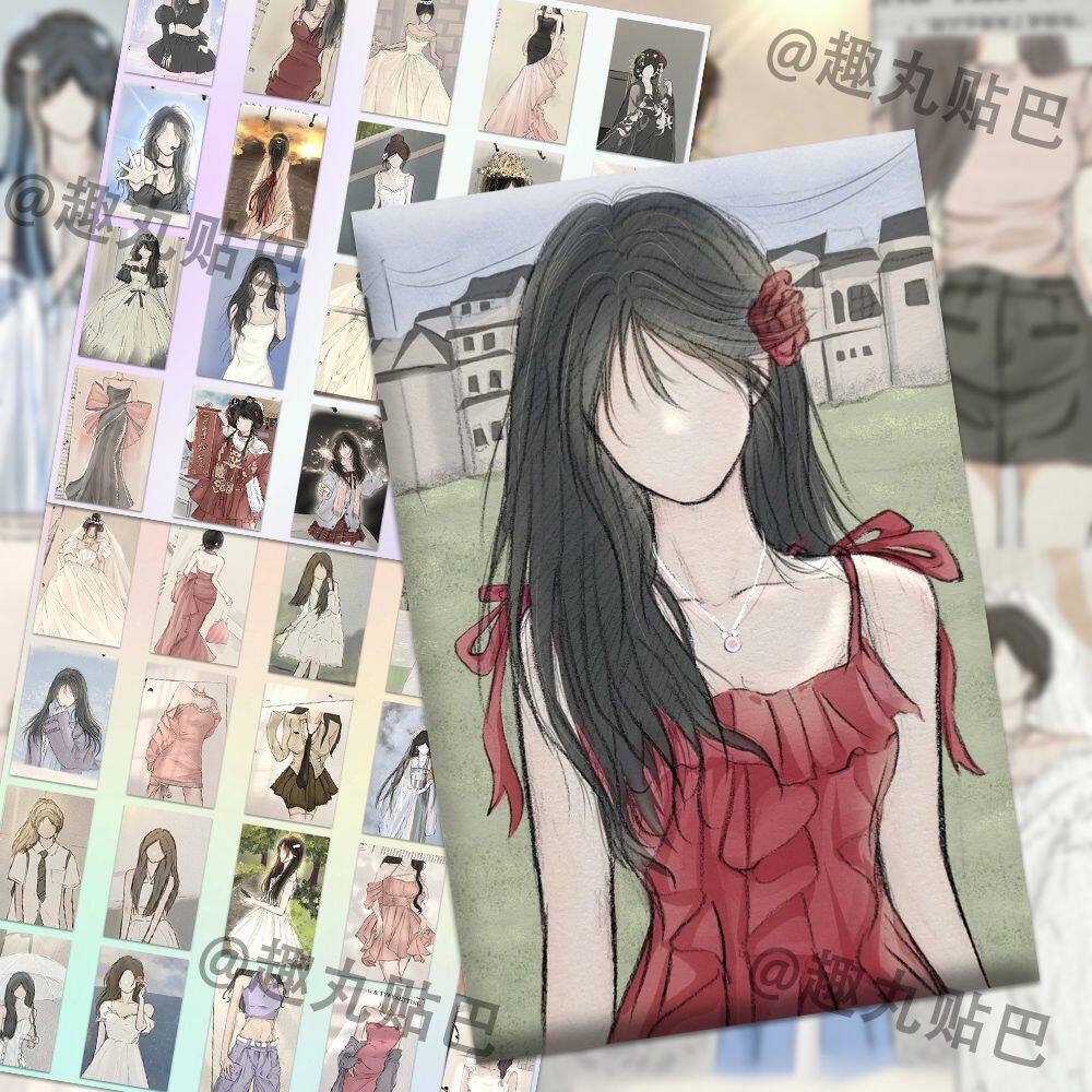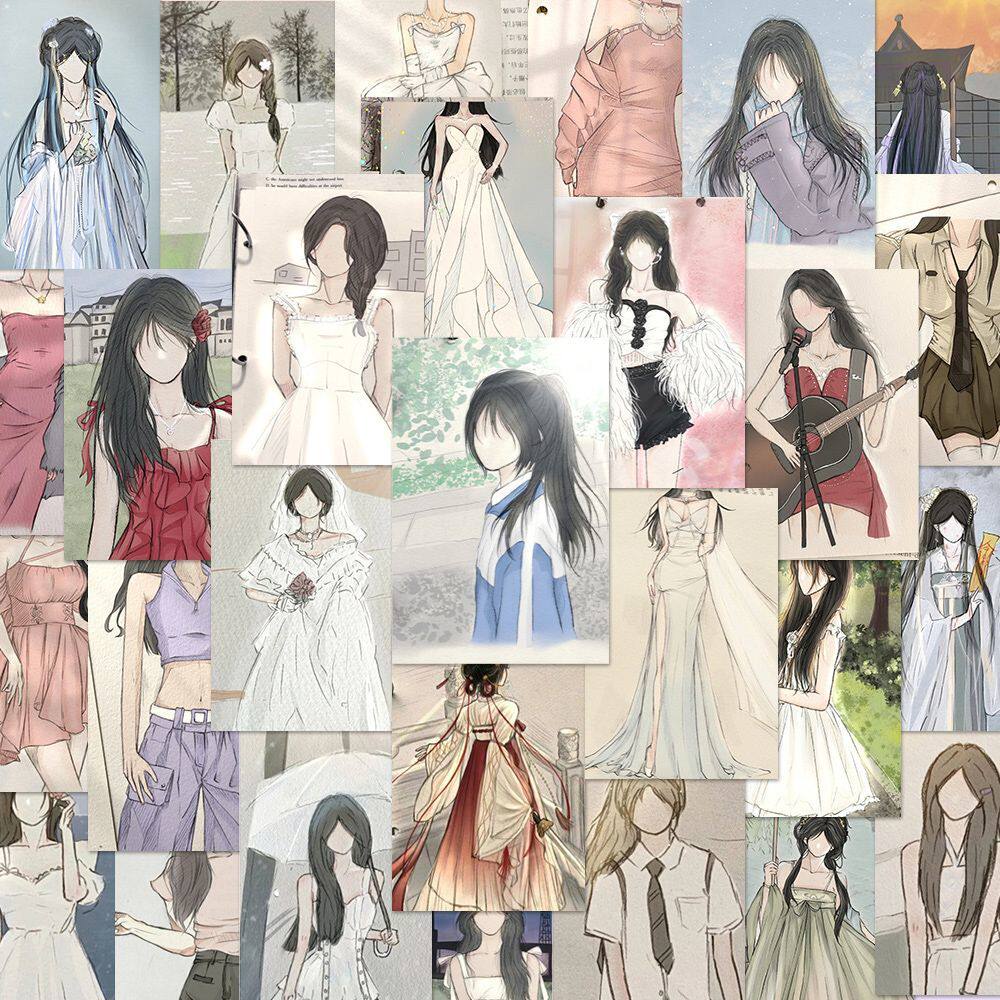 96张手绘白月光美女贴纸创意高颜值绘画素材diy桌面ins贴画自粘