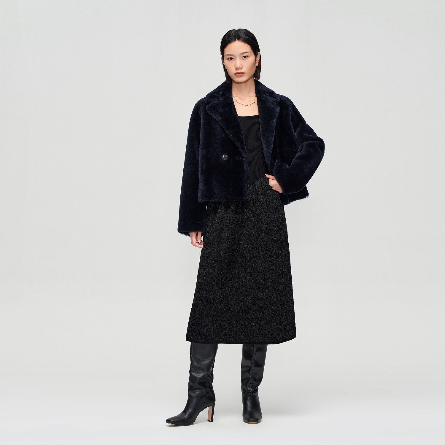 OVVOutlet秋冬新款女装两粒扣舒适温暖羊毛革短款皮草外套