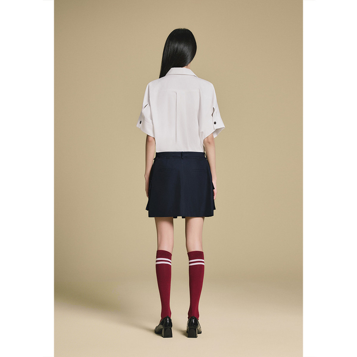 森马连衣裙女夏季撞色polo领短裙字母休闲显瘦运动风学院风百褶裙