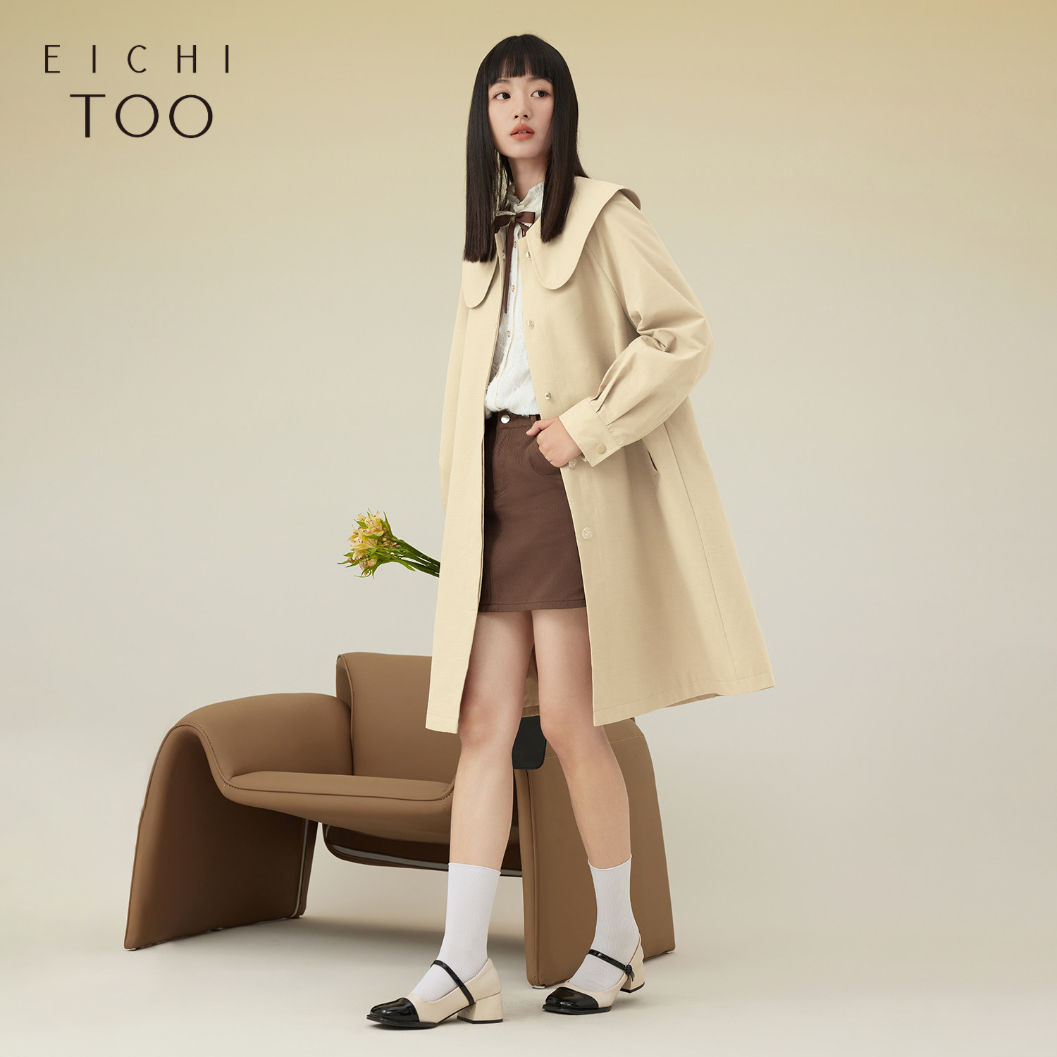 【无氟防水】Eland衣恋经典时尚风衣女宽松休闲外套2025冬季新款