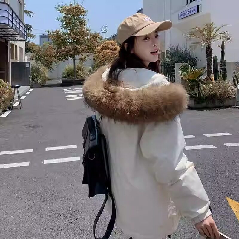 工装派克羽绒棉服女2025冬季新款加厚美式高级情侣大毛领棉衣外套