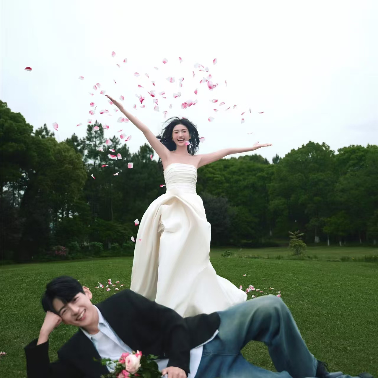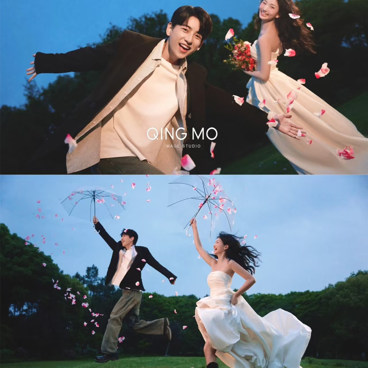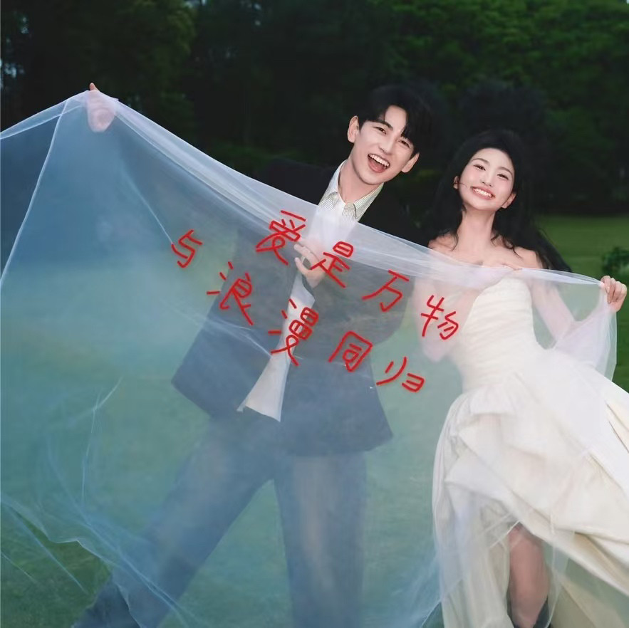 结婚领证拍照道具红毛线粘字头纱创意婚纱照外景海景旅拍透明伞