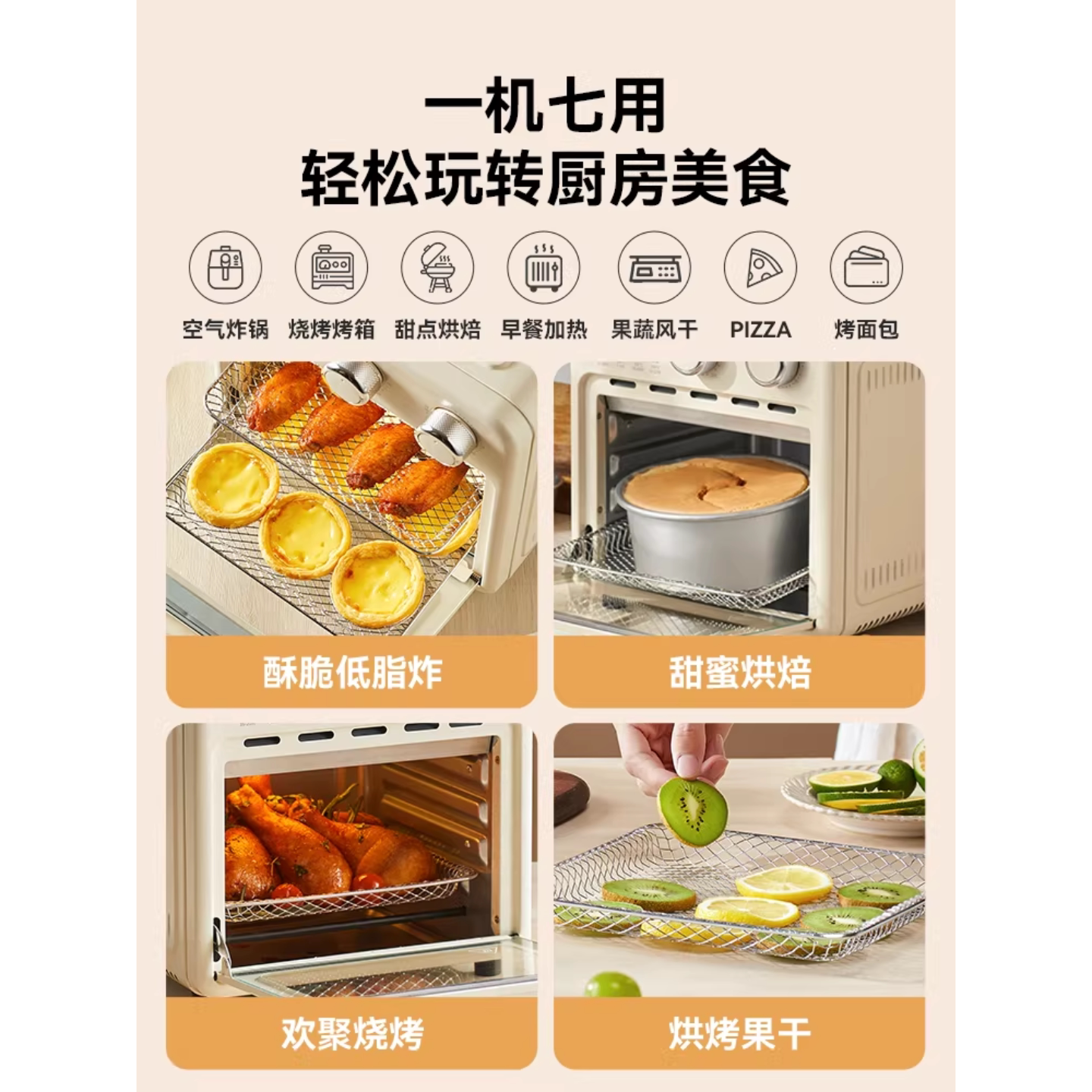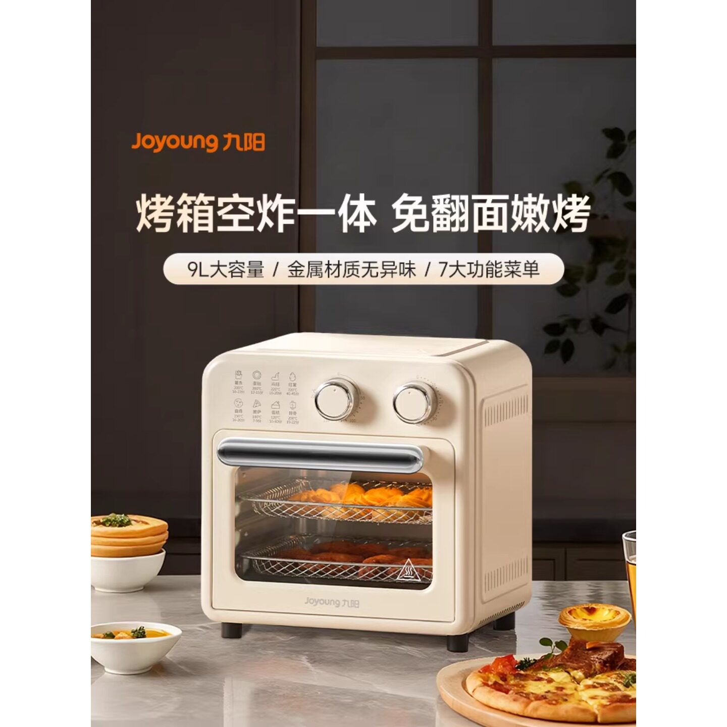 九阳烤箱空气炸锅一体二合一小型9L空气炸锅电烤箱奶油白大容量新