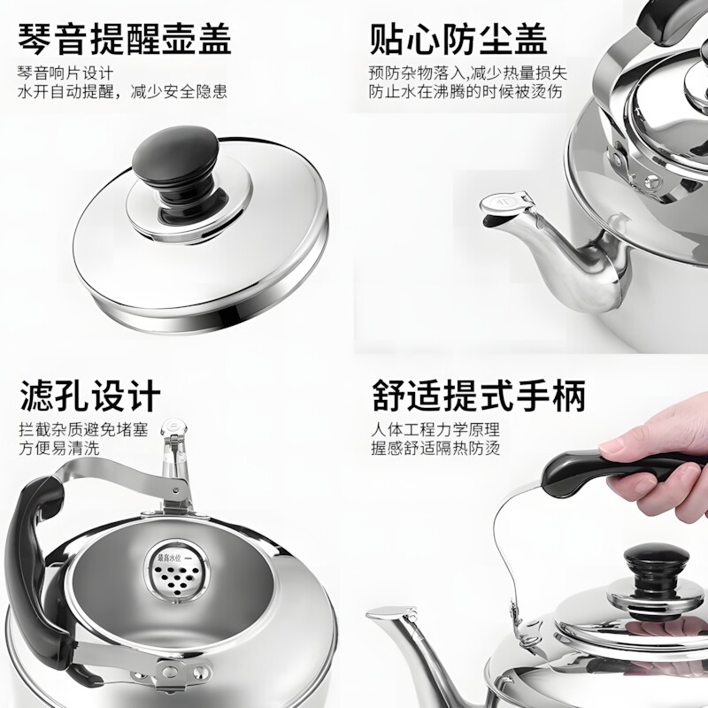 不锈钢鸣笛大容量烧水壶家用燃气热水壶明火开水壶电磁炉食品级