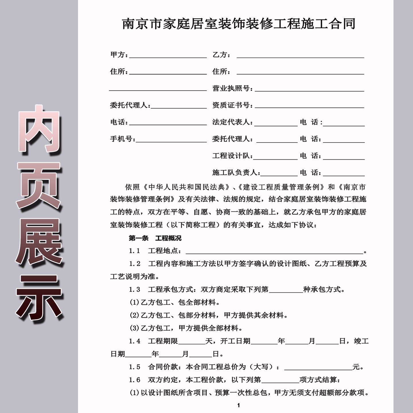 2026版南京市家庭居室装饰装修工程施工合同南京装修合同南京合同装修收据设计合同书室内装修合同设计可定制