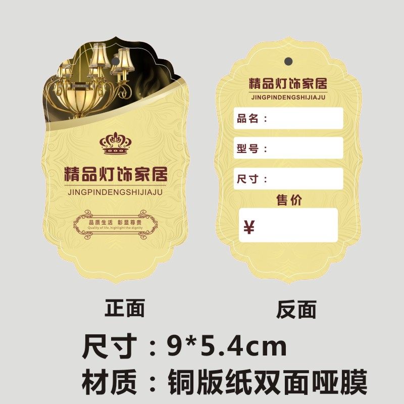 诗束 灯饰灯具吊牌现货定做灯标价牌纸价格标签设计价签标订做印刷包邮 3