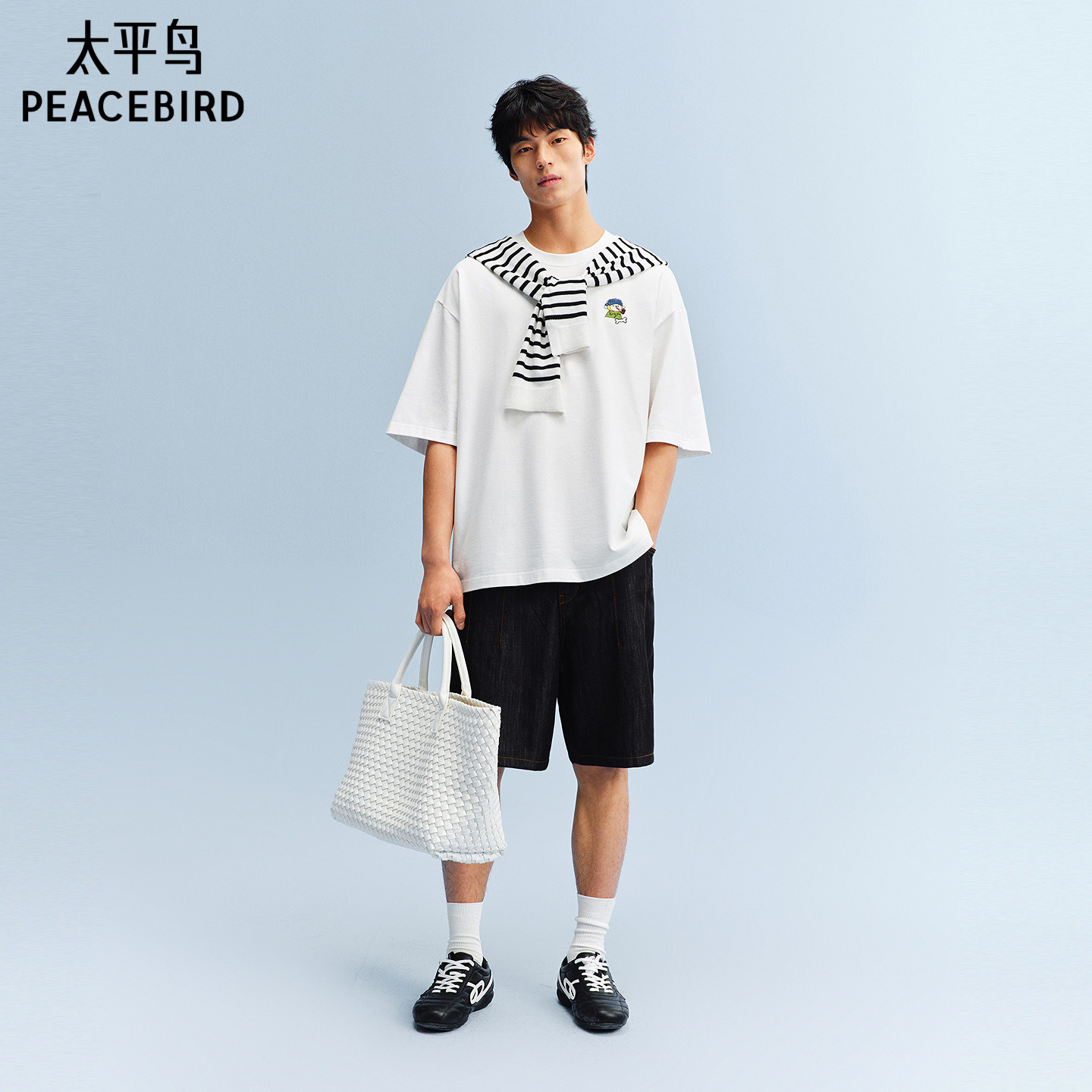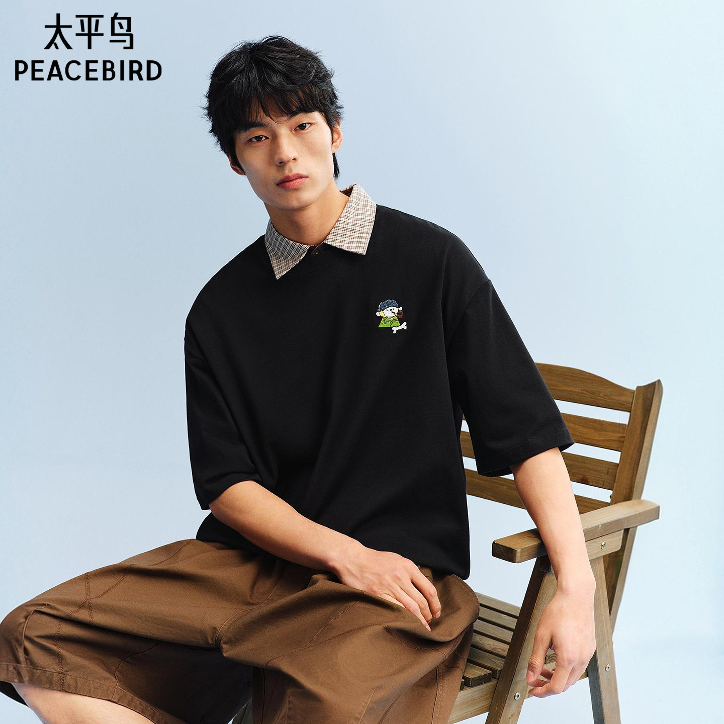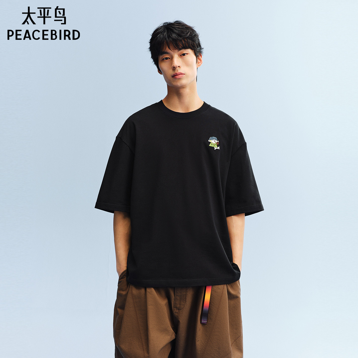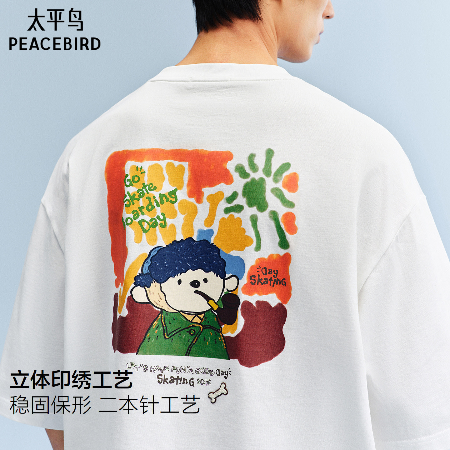 太平鸟男装纯棉印花短袖T恤26夏新款圆领潮流体恤衫时尚宽松半袖