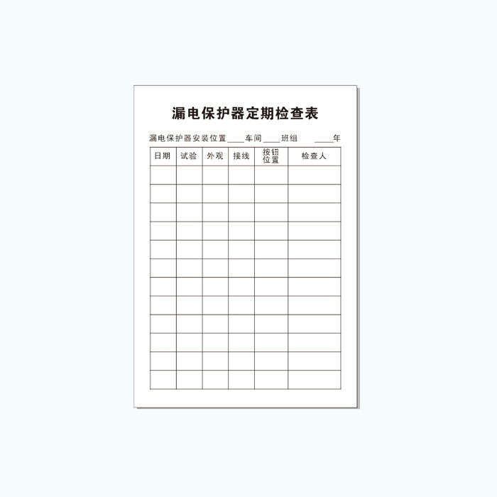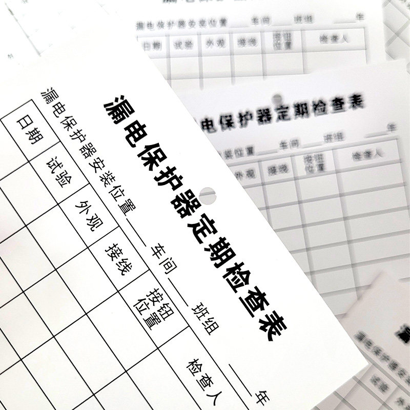 漏电保护器定期检查表车间漏电保护断路器标识工厂安全点检卡纸