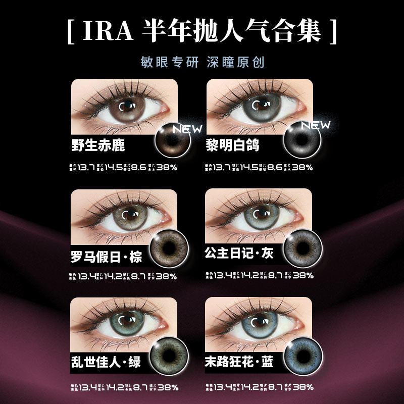 IRA半年抛美瞳混血款小大直径自然款棕色绿色隐形眼镜末路狂花蓝