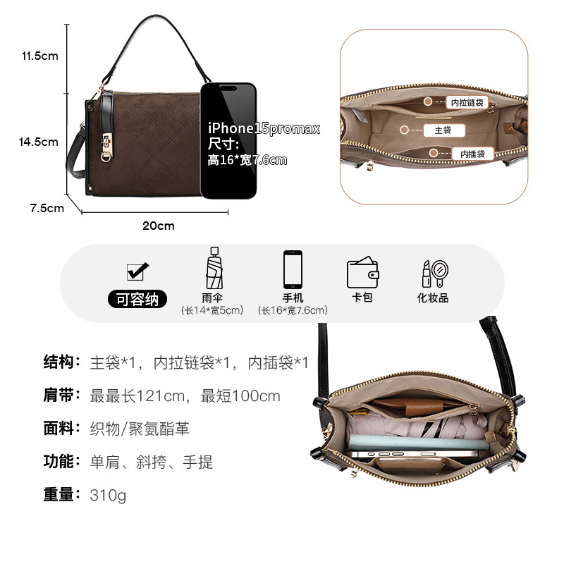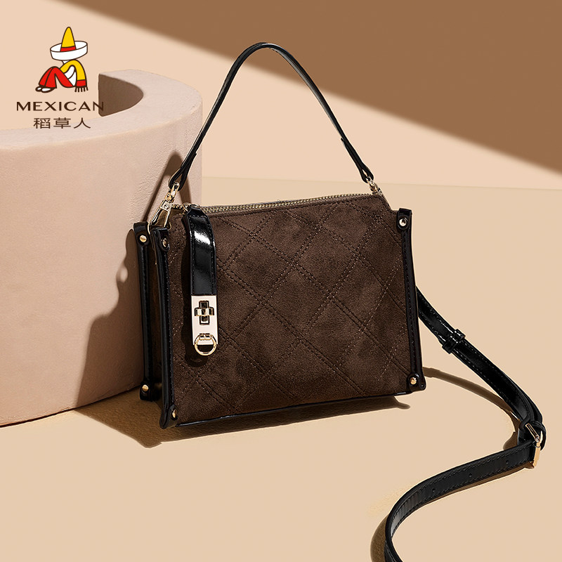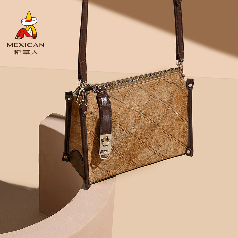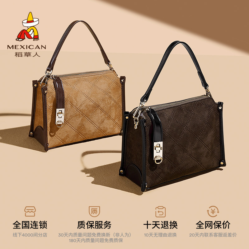 稻草人秋冬复古菱格手提包包女式2025新款高级感通勤包单肩斜挎包