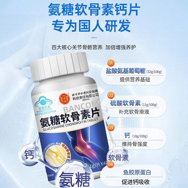 北京同仁堂氨糖软骨素钙片中老年人护关节高钙骨胶原加补钙片正品