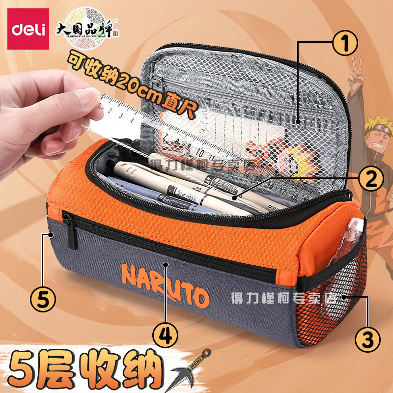 火影忍者笔袋大容量五六年级文具盒男孩款初高中生高颜值简约可手提2025新款笔盒学生用男帅气牛津布文具袋子