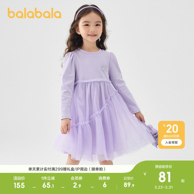 【balaOne】巴拉巴拉童装女童连衣裙2025新款春装网纱裙甜美洋气