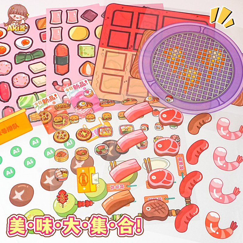 新款AKI酱自助餐厅安静书免裁剪3D立体场景仿真食玩解压微缩场景贴纸合集女孩卡通手工创意儿童益智玩具礼物