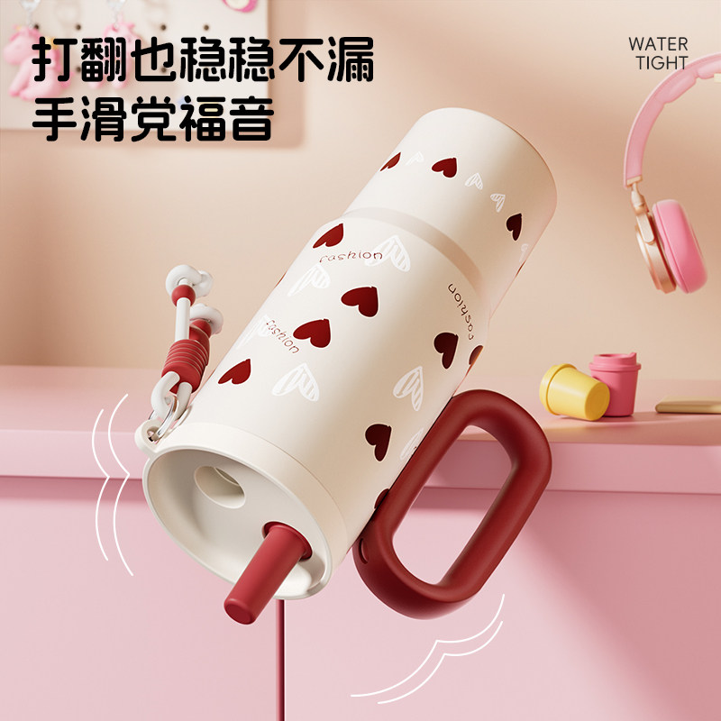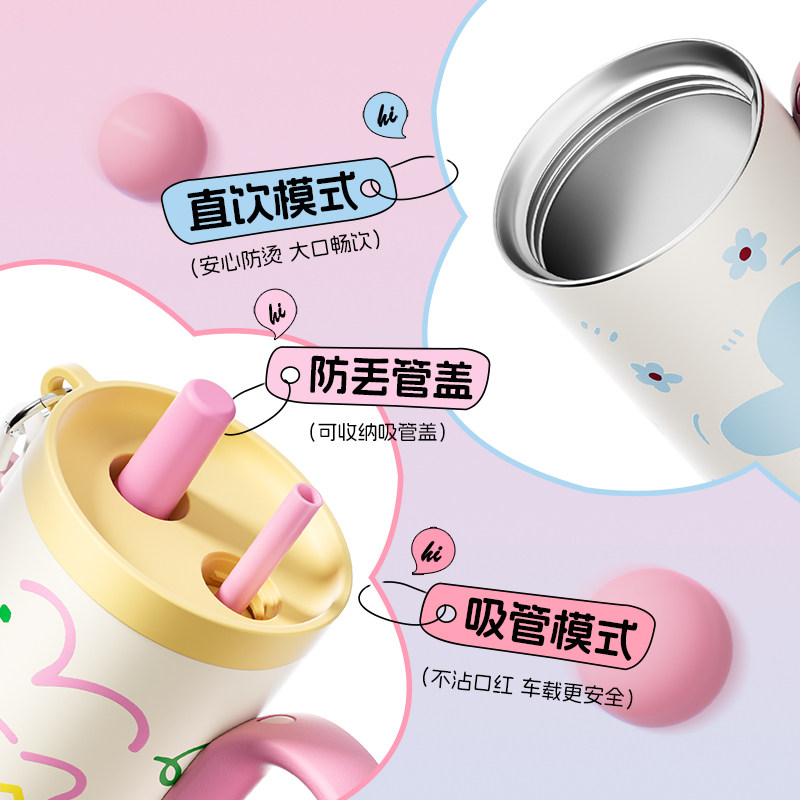 保温杯316不锈钢双饮咖啡杯大容量女高颜值随行吸管水杯情侣杯子