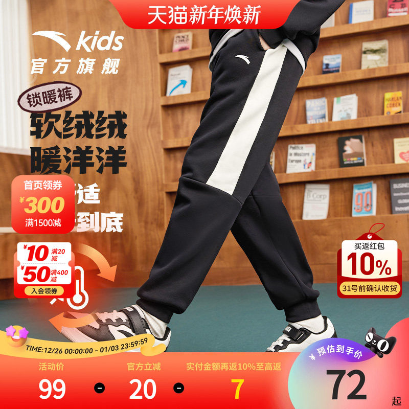 【清仓价】安踏儿童装男童加绒裤子裤冬季长裤棉裤休闲卫裤秋冬